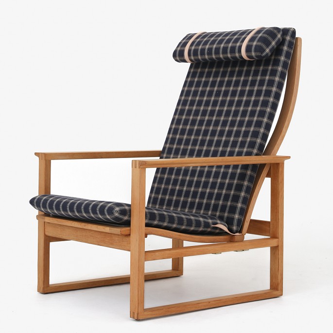 BM 2254 - Nybetrukket højrygget Slædestol i eg med nye hynder i Cotil (53932).