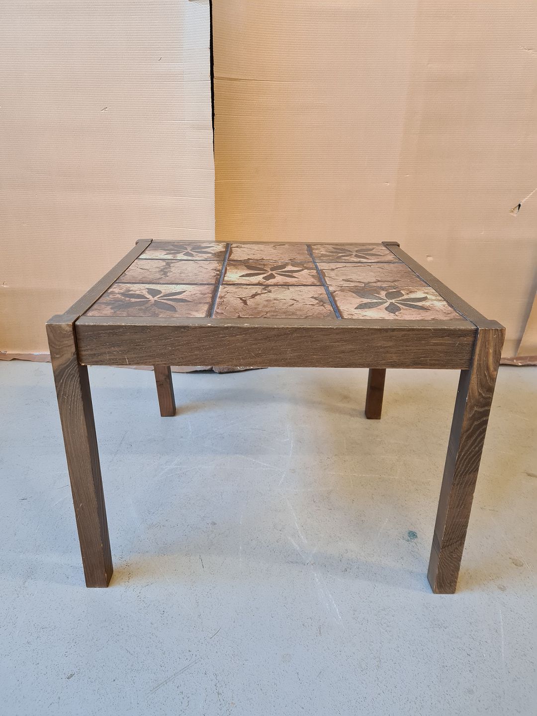 Lampebord i ege og fyrretræ med kakler fra 1970erne.