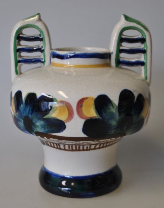 Alumina fajance vase, 227/257, 20. årh. København, Danmark. Polykrom dekoration. Stemplet. H.: 11,5 cm.