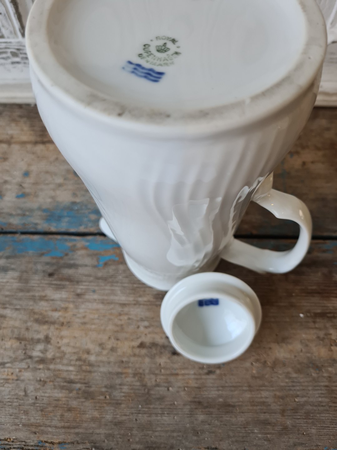 Royal Copenhagen Hvid svejfet chokoladekande 22 cm.