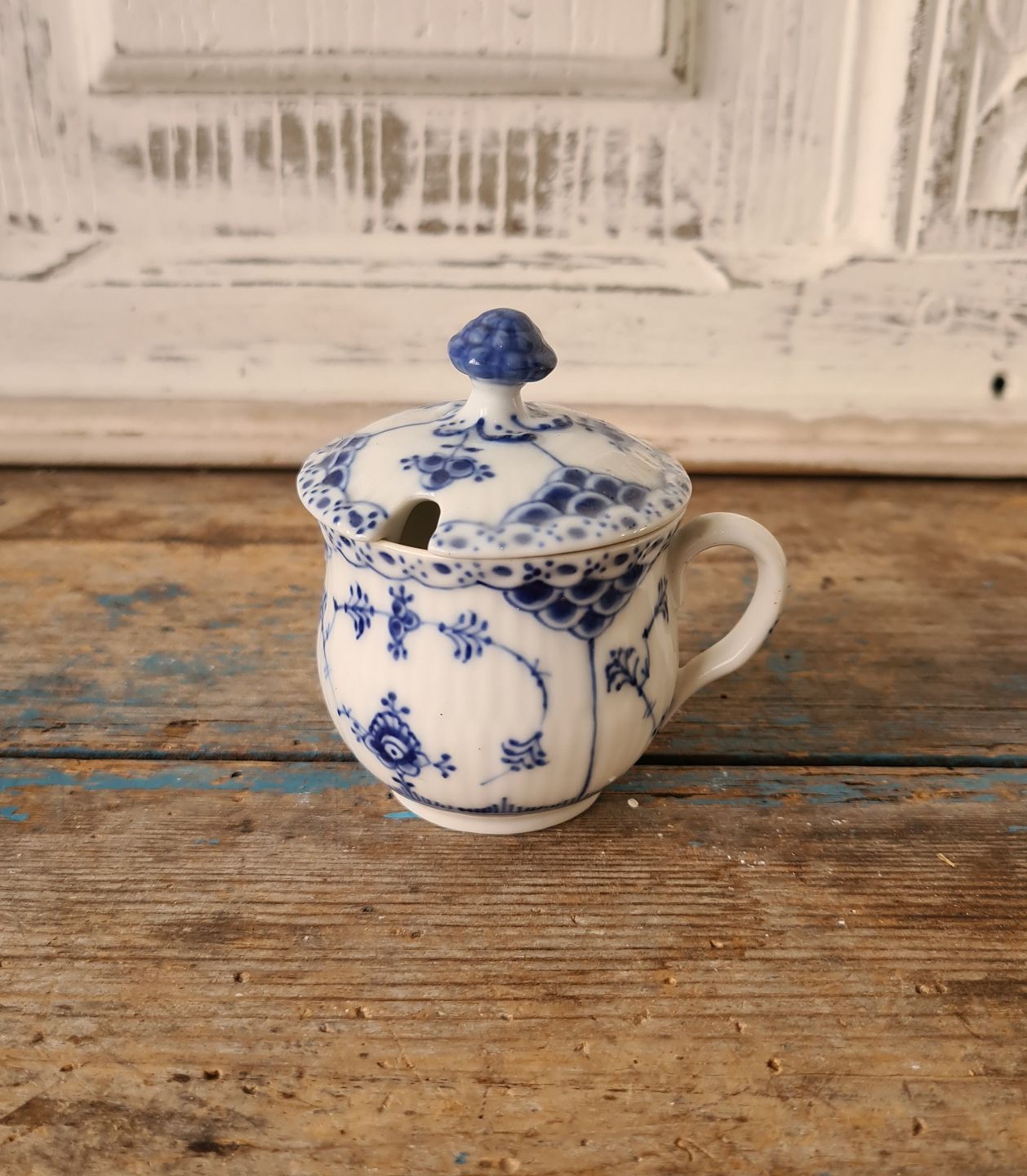 Royal Copenhagen Musselmalet halvblonde sennepskrukke no. 744