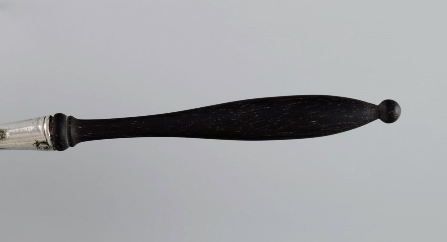 Europæisk sølvsmed. Antik sølv tesi på trefod med skaft i drejet ibenholt. Forgyldt indvendigt. 1800-tallet.