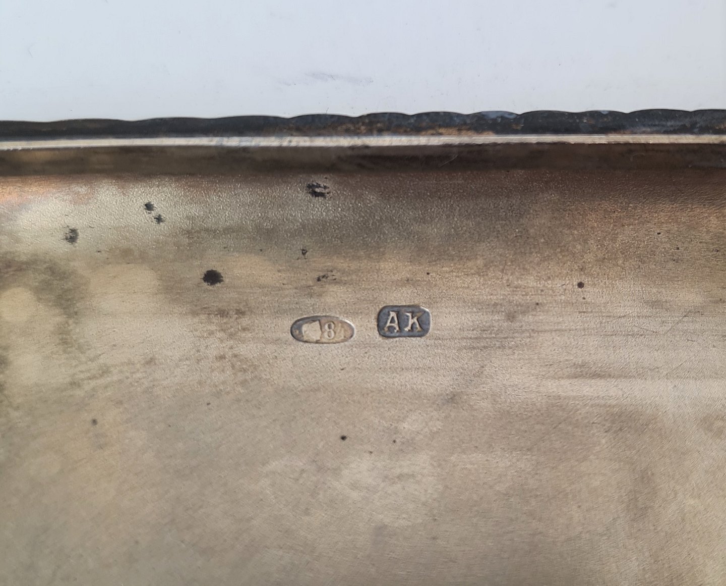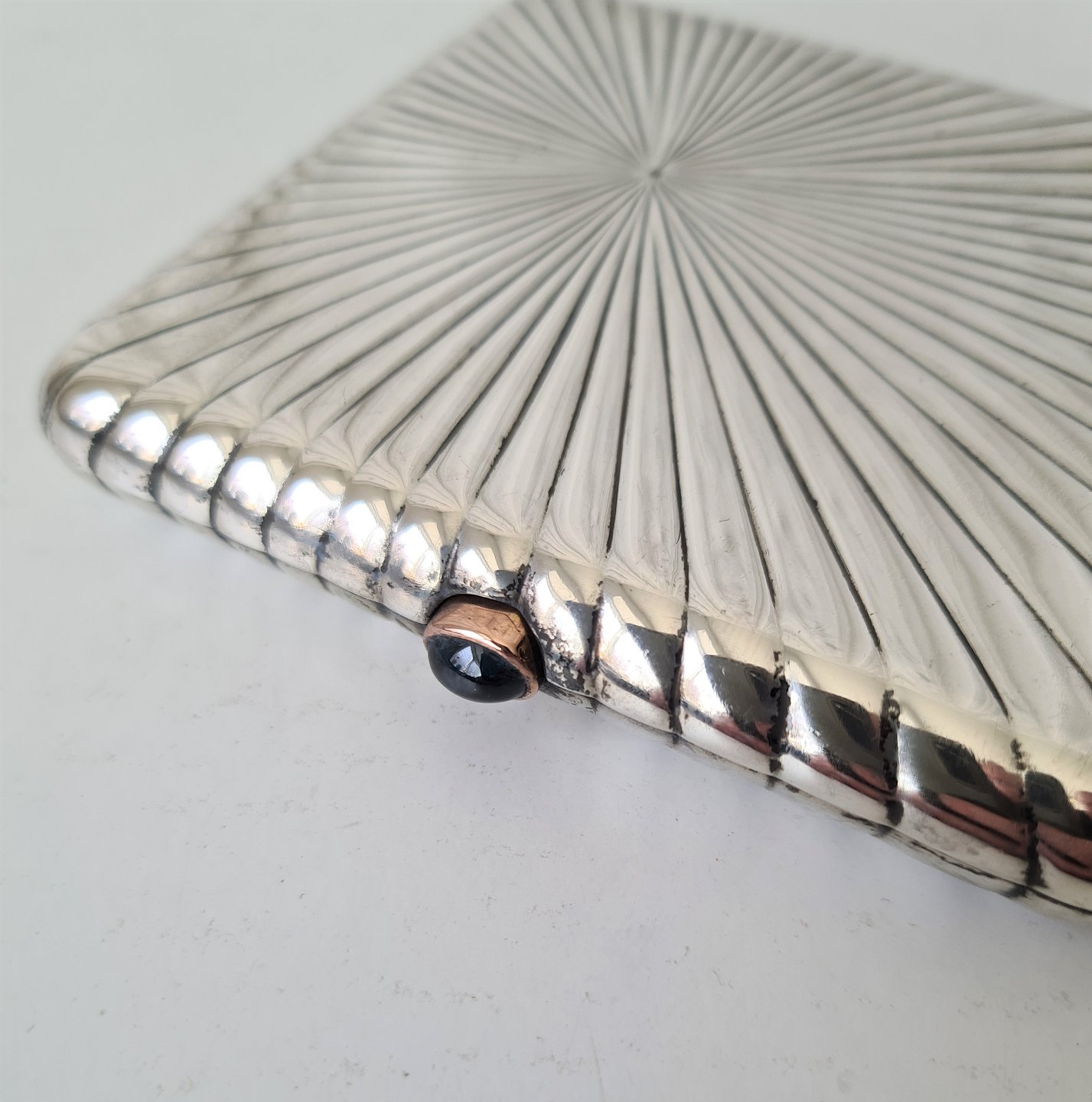 Russisk cigaret etui i sølv med safir kanp fattet i 14 kt guld. Sølvsmed Aleksandr Karpov St. Petersborg 1908