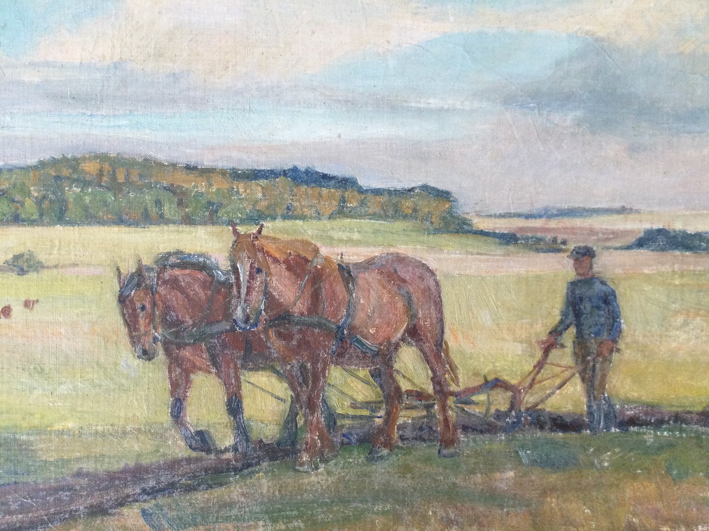 Landmand der pløjer med heste.