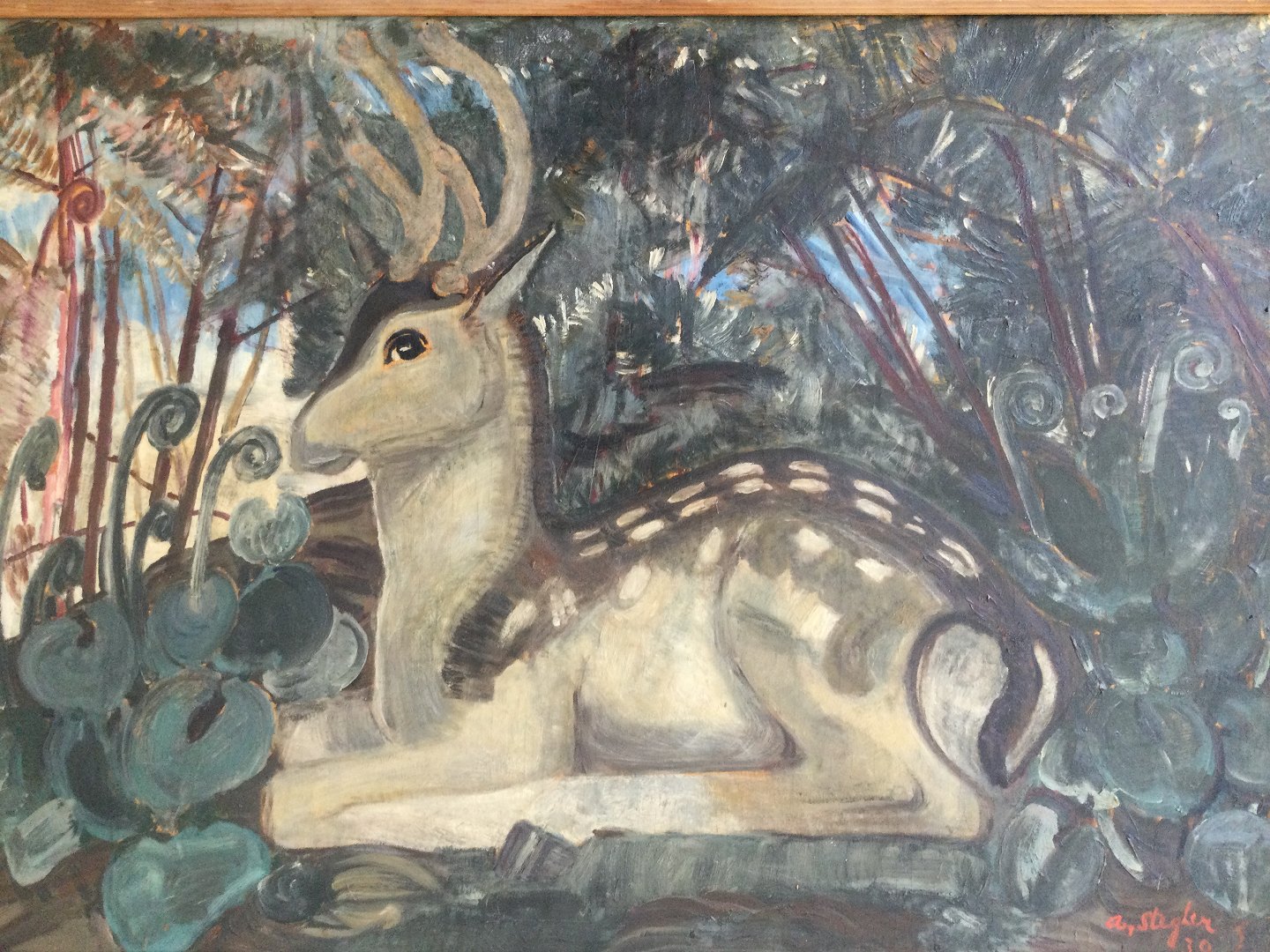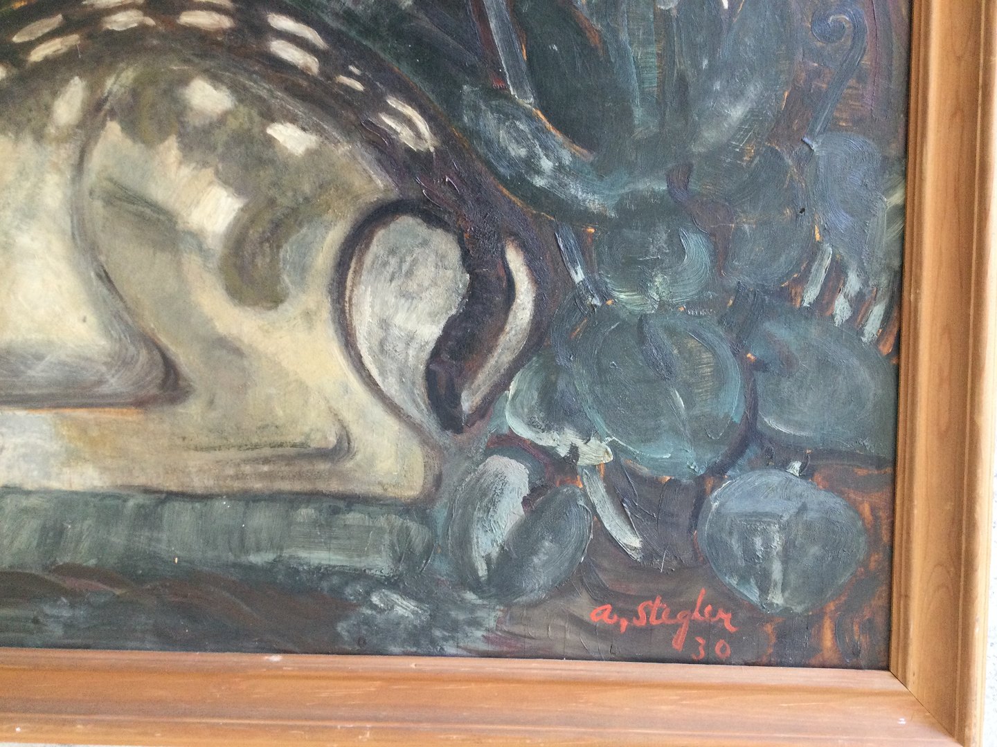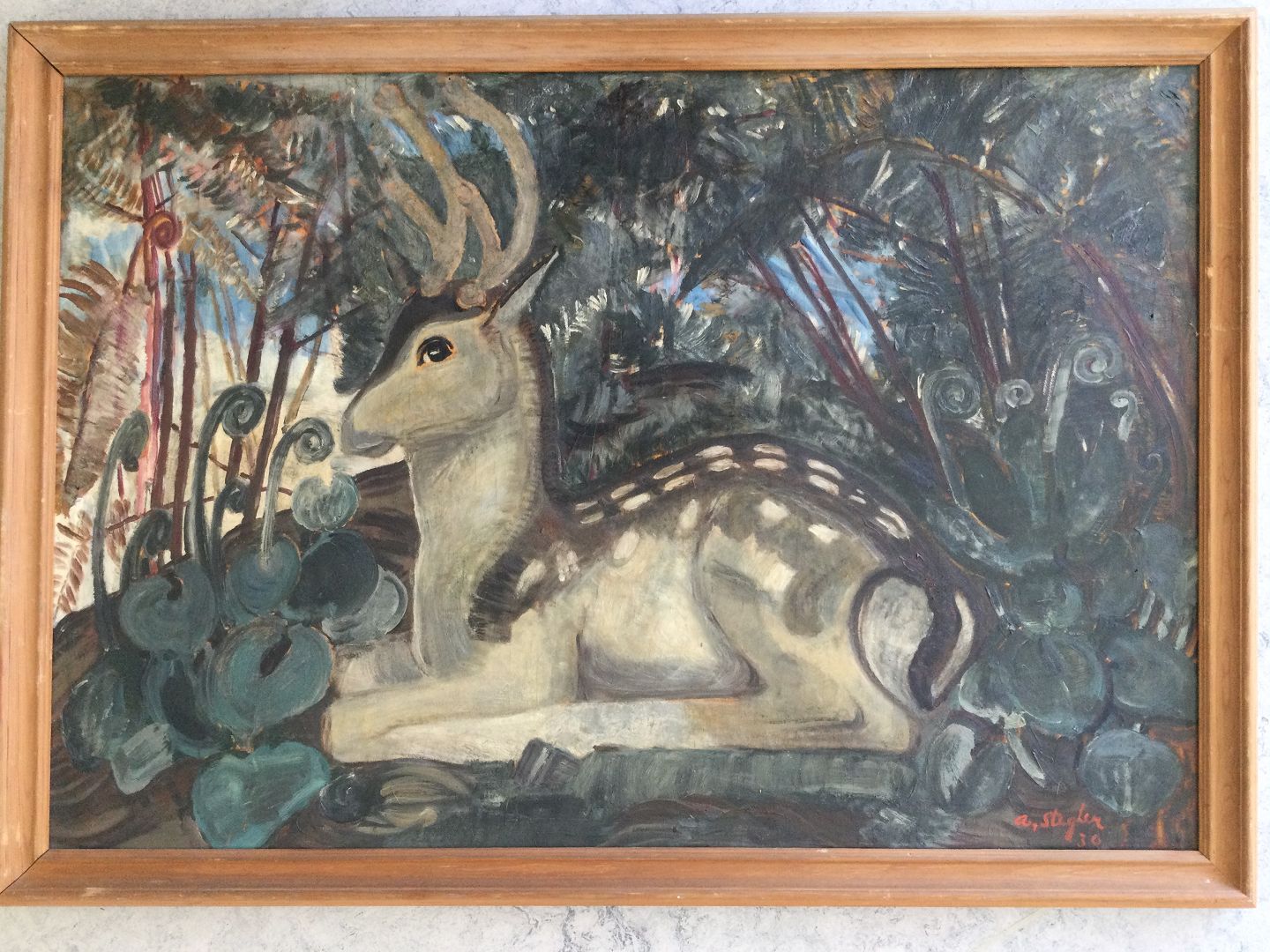 Maleri af Albert Stegler - Liggende dådyr i landskab 1930.