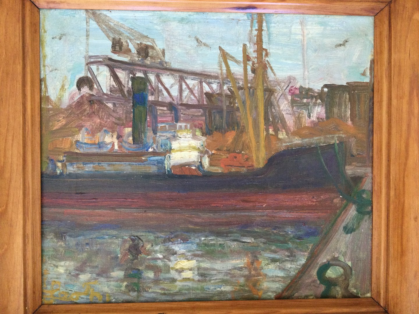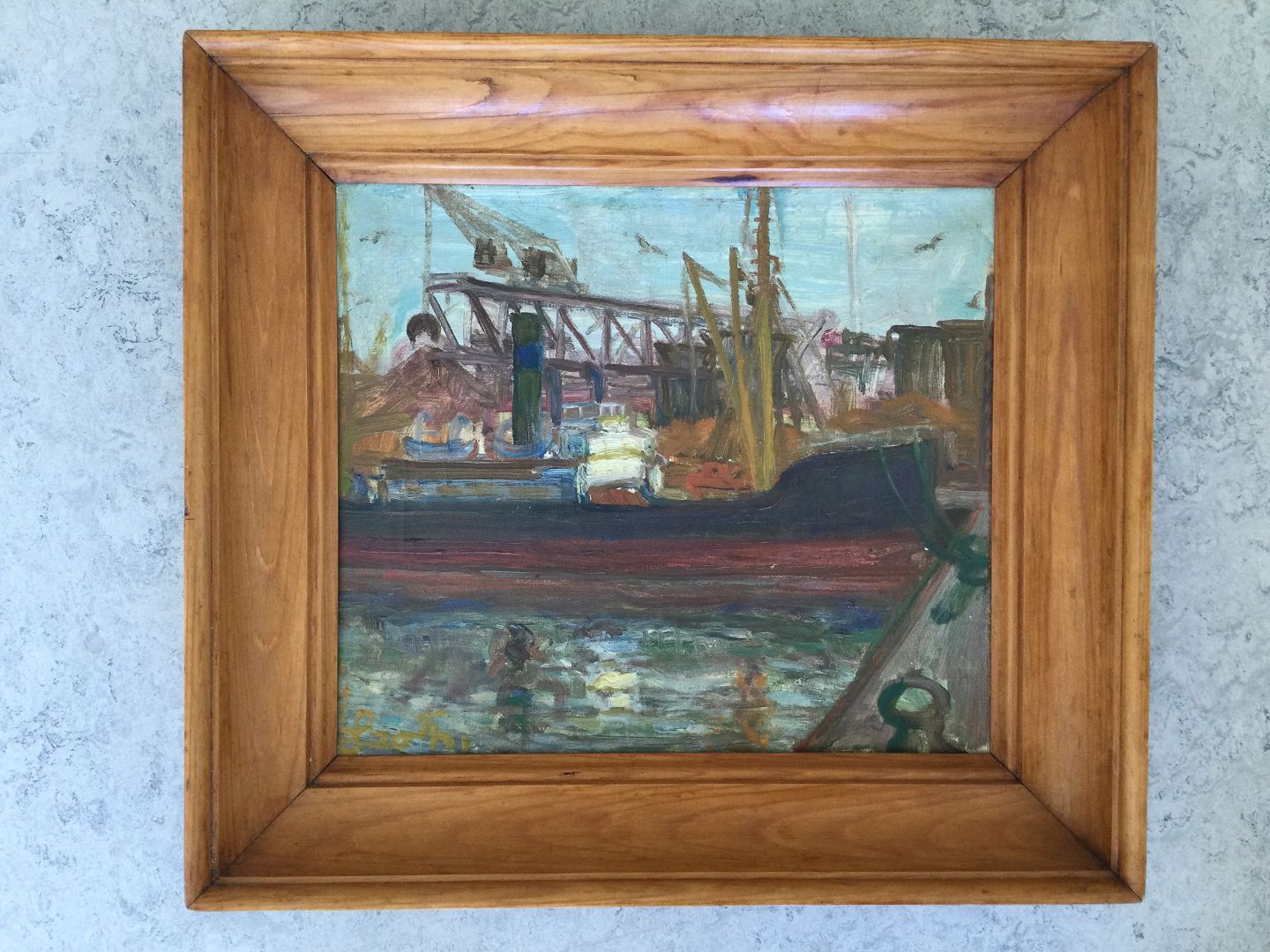 Maleri af Leo Thellefsen - Havneparti, Esbjerg 1953..