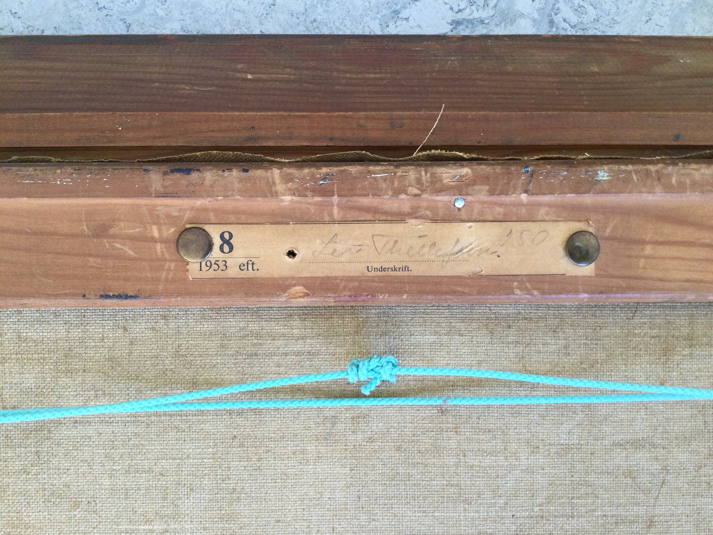 Bagpå udstillingsmærkat fra KE 1953 - Leo Thellefsen