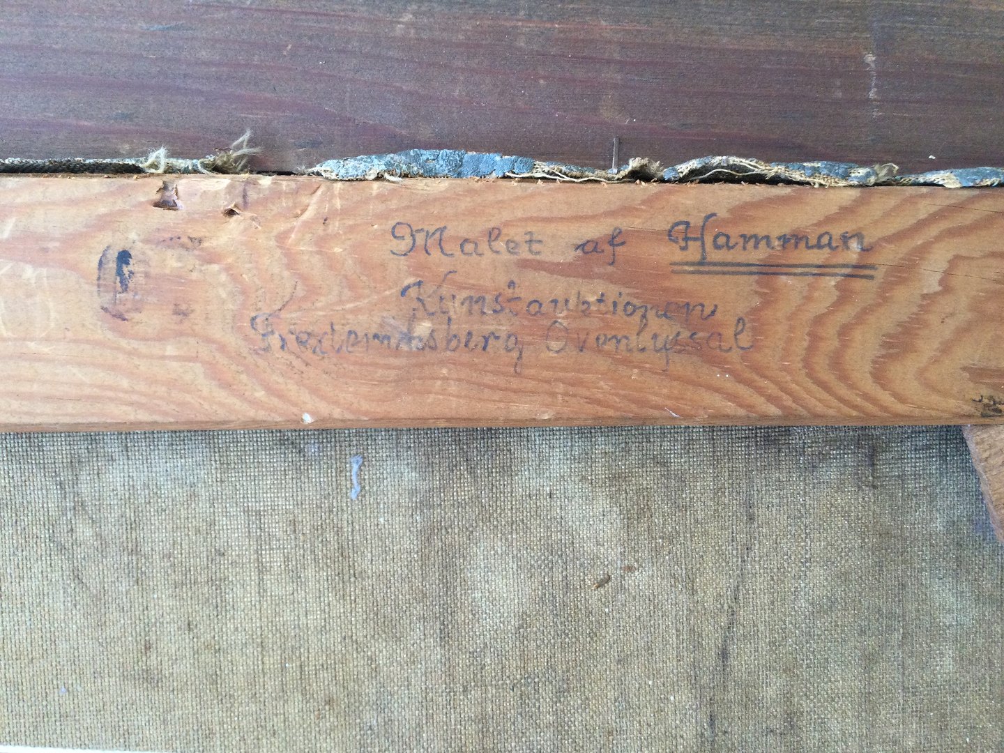 Bagpå blindramme - Malet af Hamman "Kunstauktions Frederiksberg Ovenlyssal.