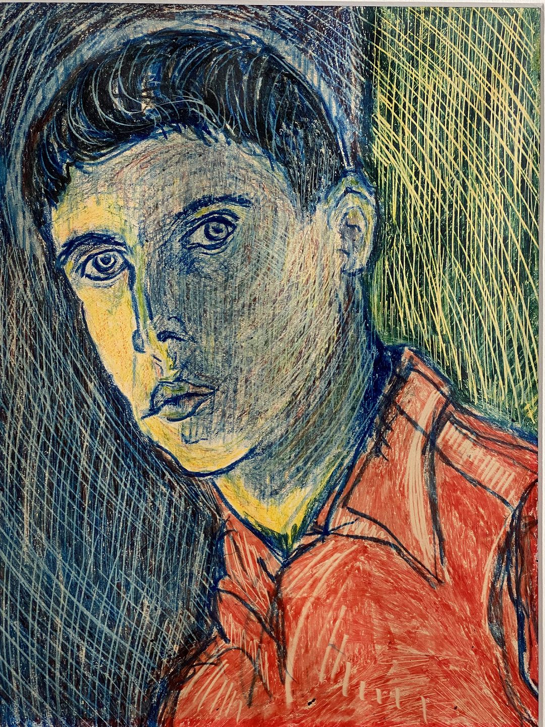 Mål: 58 x 34 cm (43 x 34 cm). Indrammet med passsepartout i fyretræsramme
