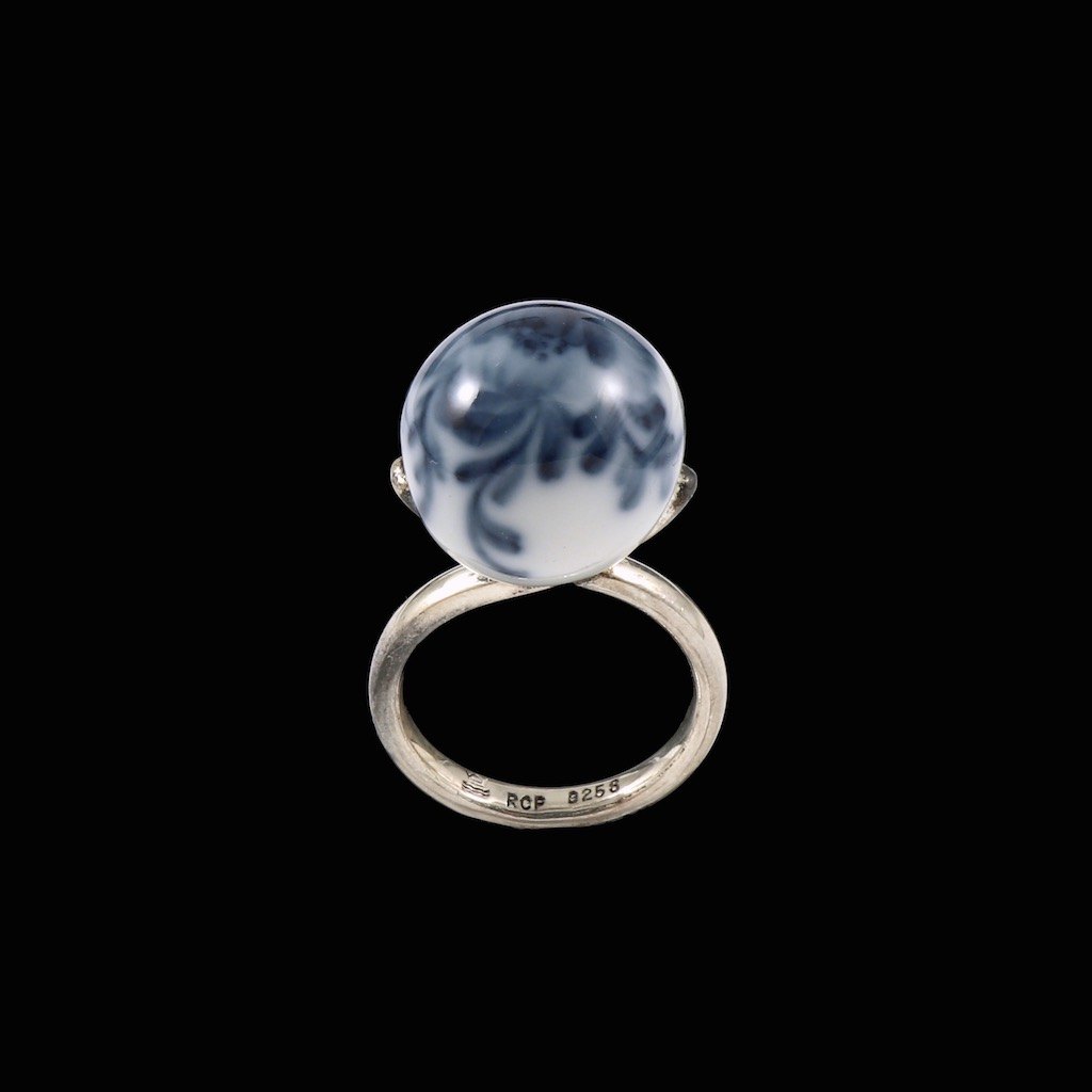 Royal Copenhagen. Sterling Silver Ring with Porcelain.