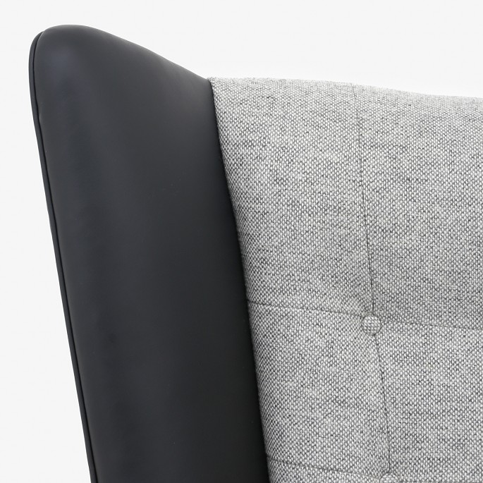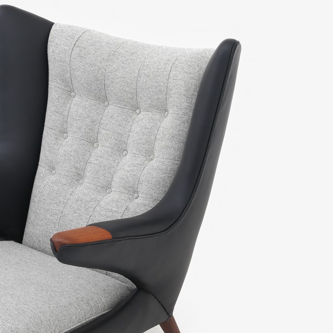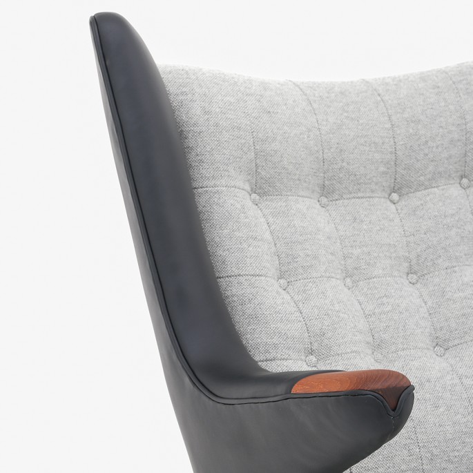 AP 19 - Nybetrukket Bamsestol i Hallingdal 65-uld (farve 116) samt sort Savanne-læder (semi-anilin-læder). KLASSIK tilbyder Bamsestolen i tekstil og/eller læder efter eget valg. Kontakt os venligst for mere information.