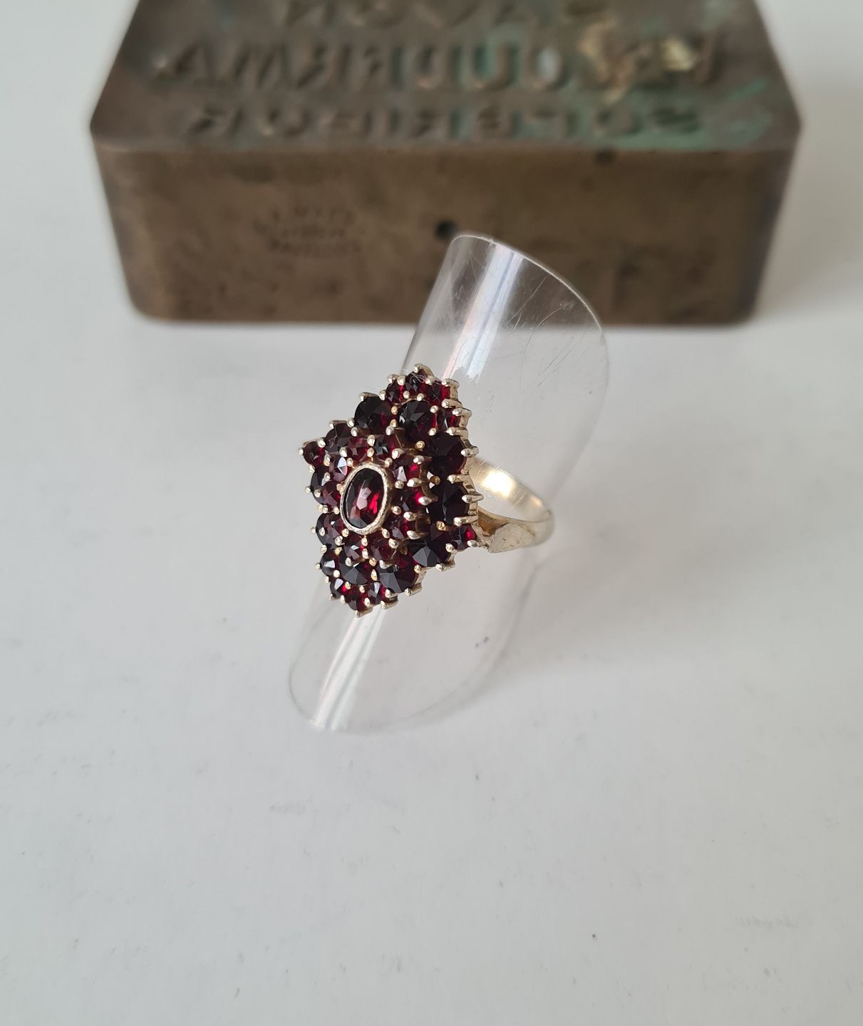 Vintage garnet ring in gilded silver by Hugo Grün