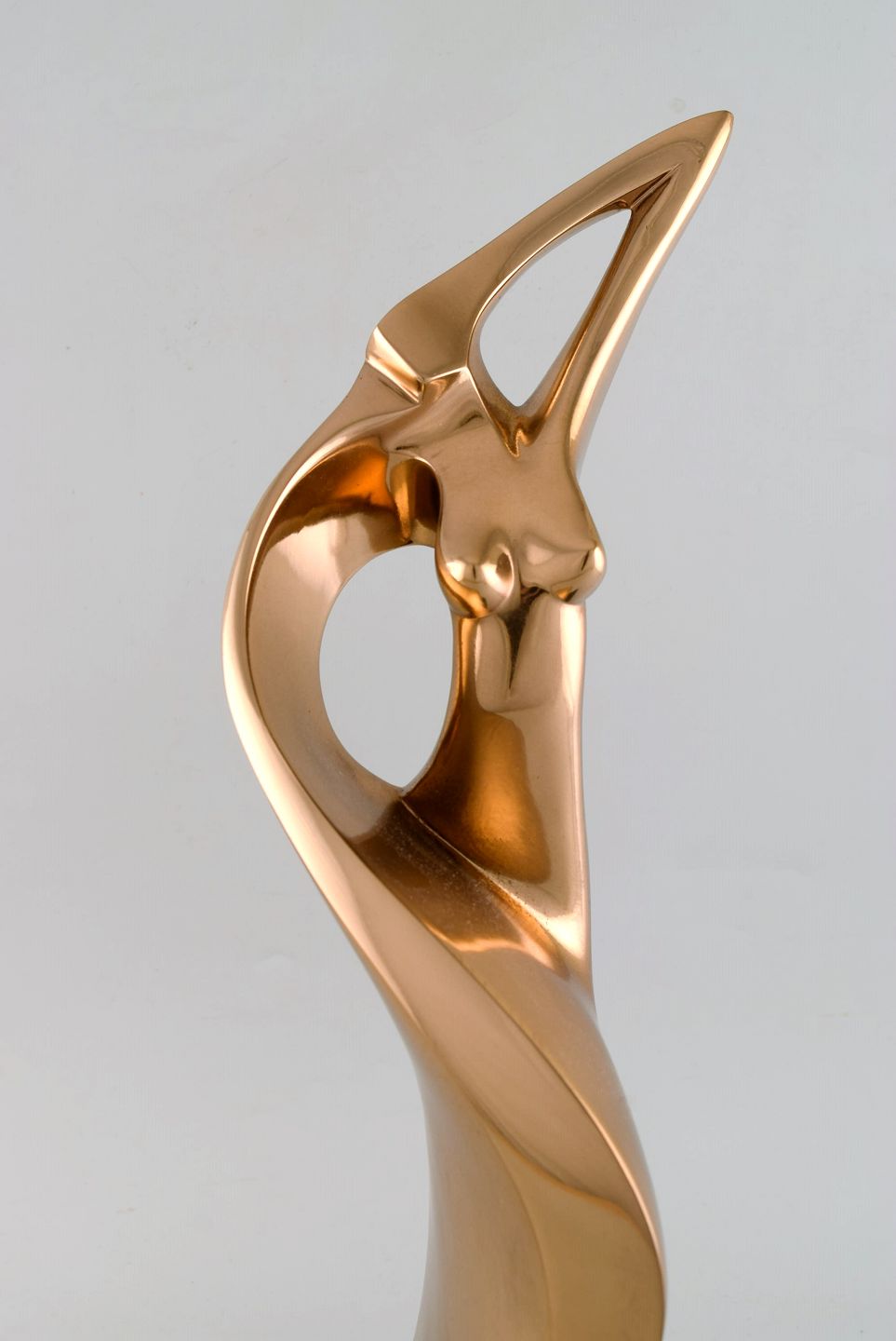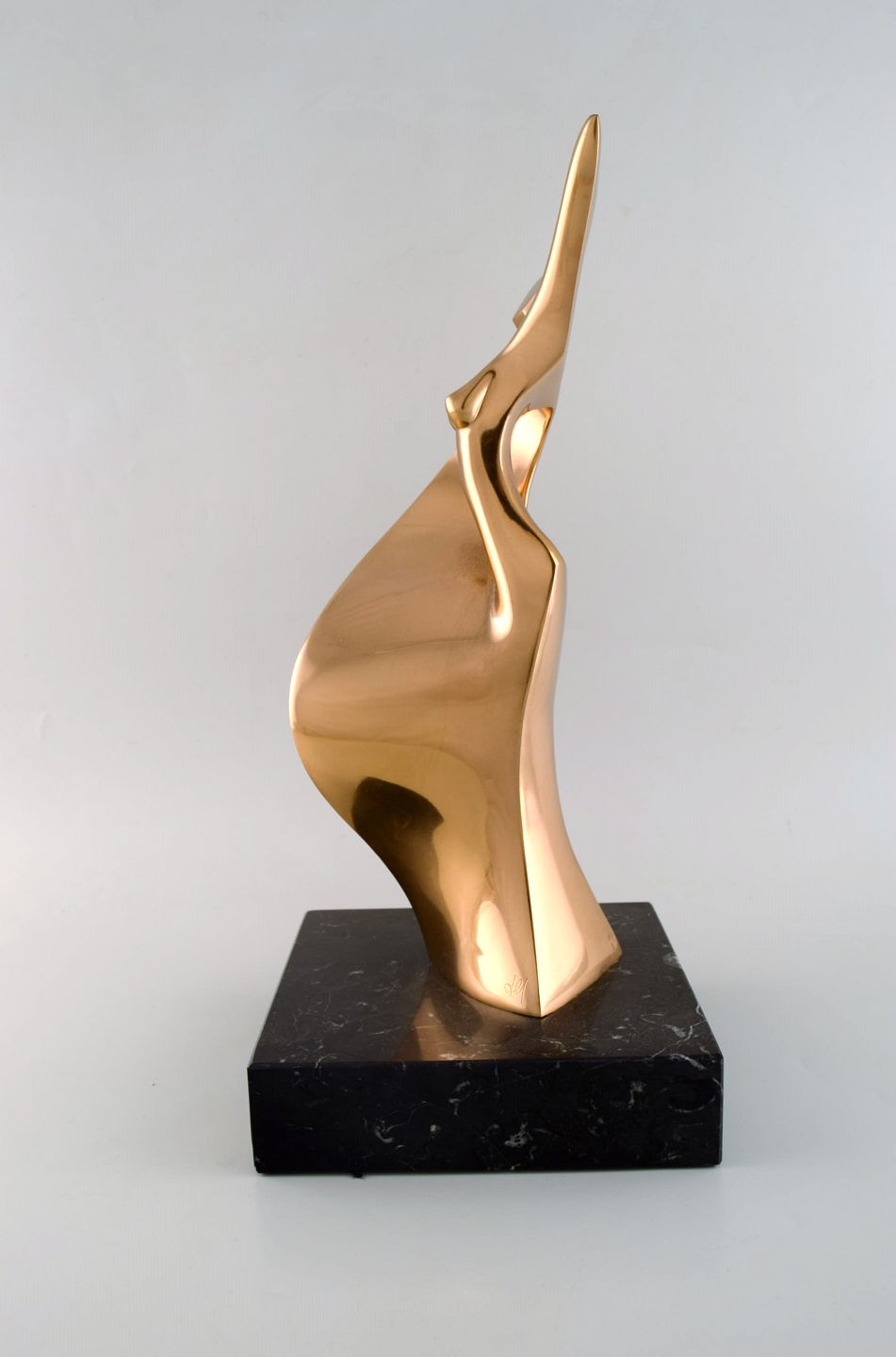 Tony Morey for Italica, Spain. Large modernist female sculpture in bronze on marble base. Late 20th century.