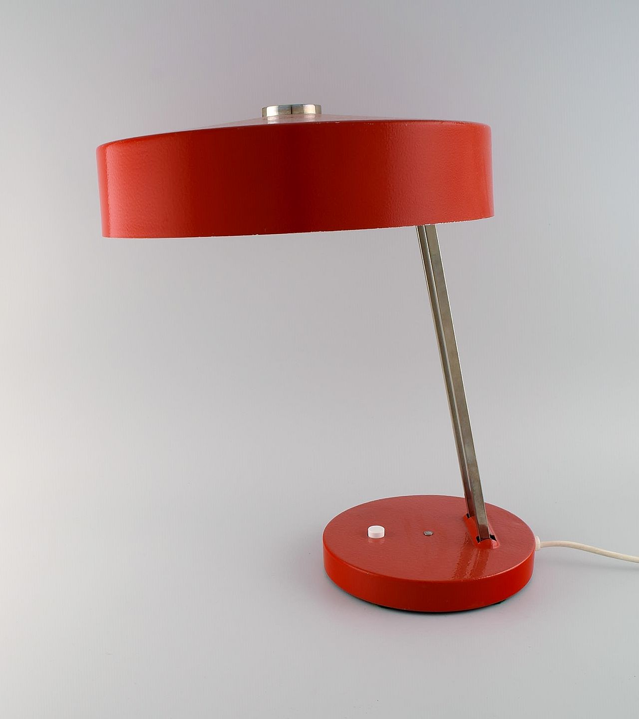 Large adjustable desk lamp in original red lacquer. 1970's.