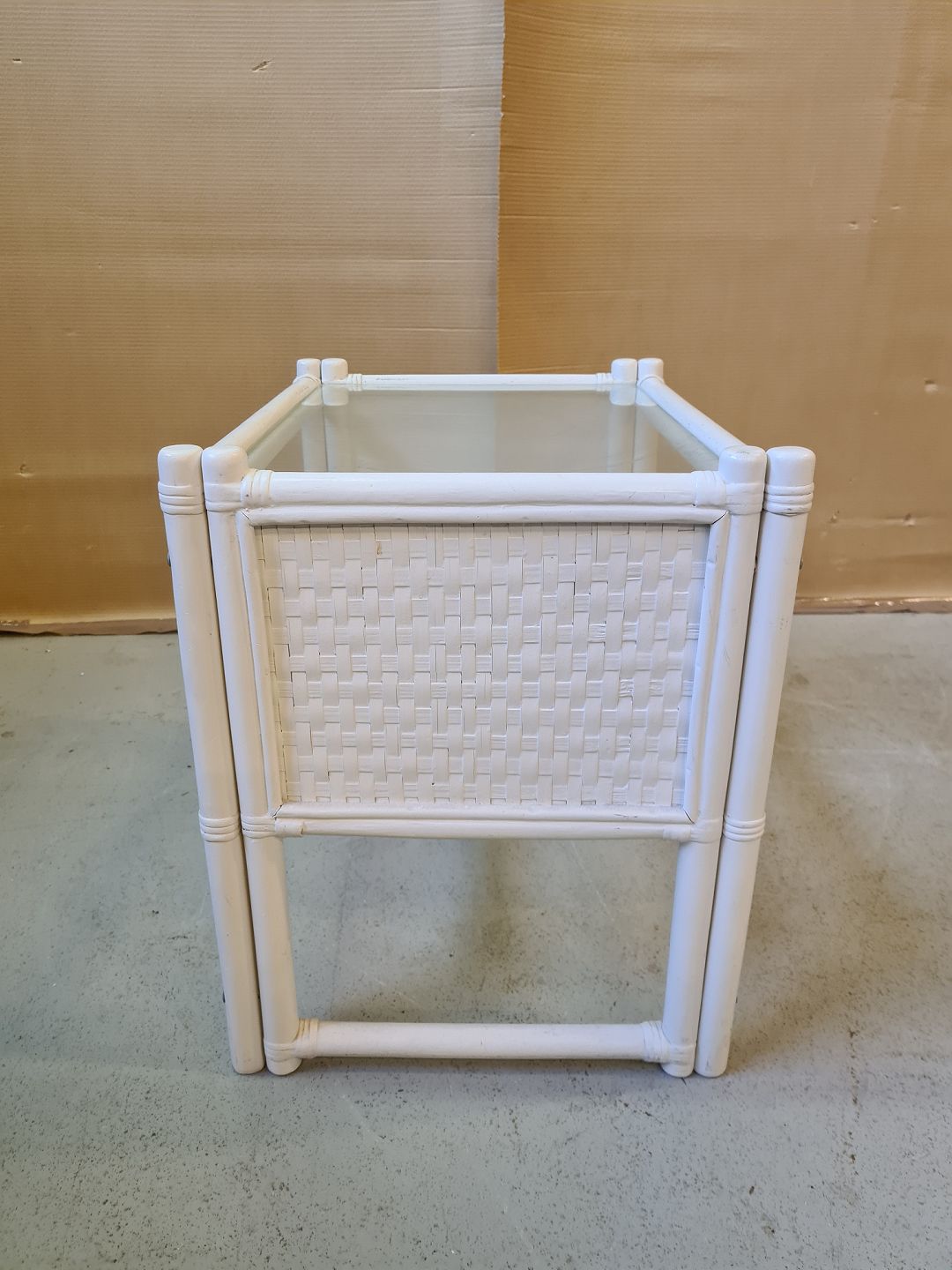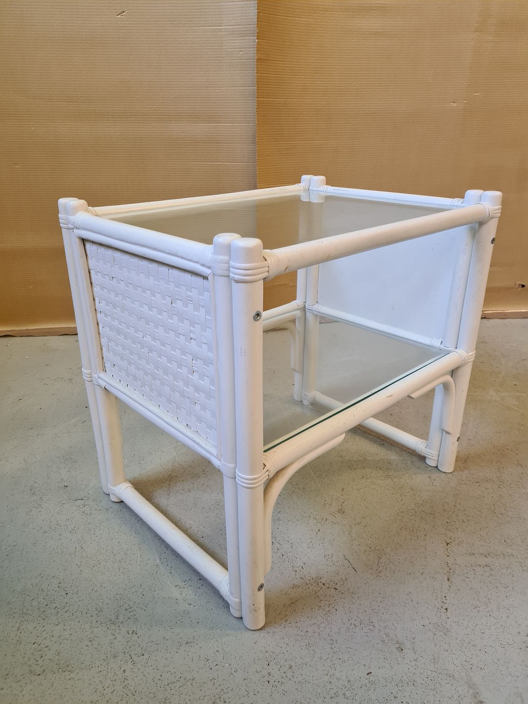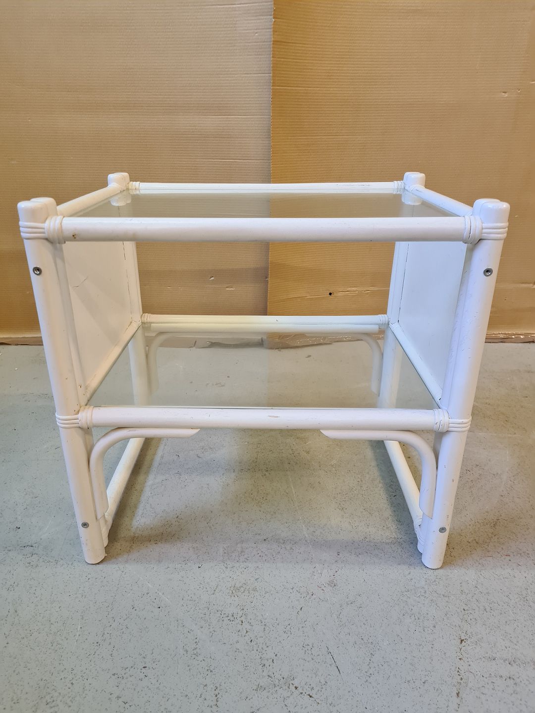Malet lampebord med 2 glasplader fra 1990erne.