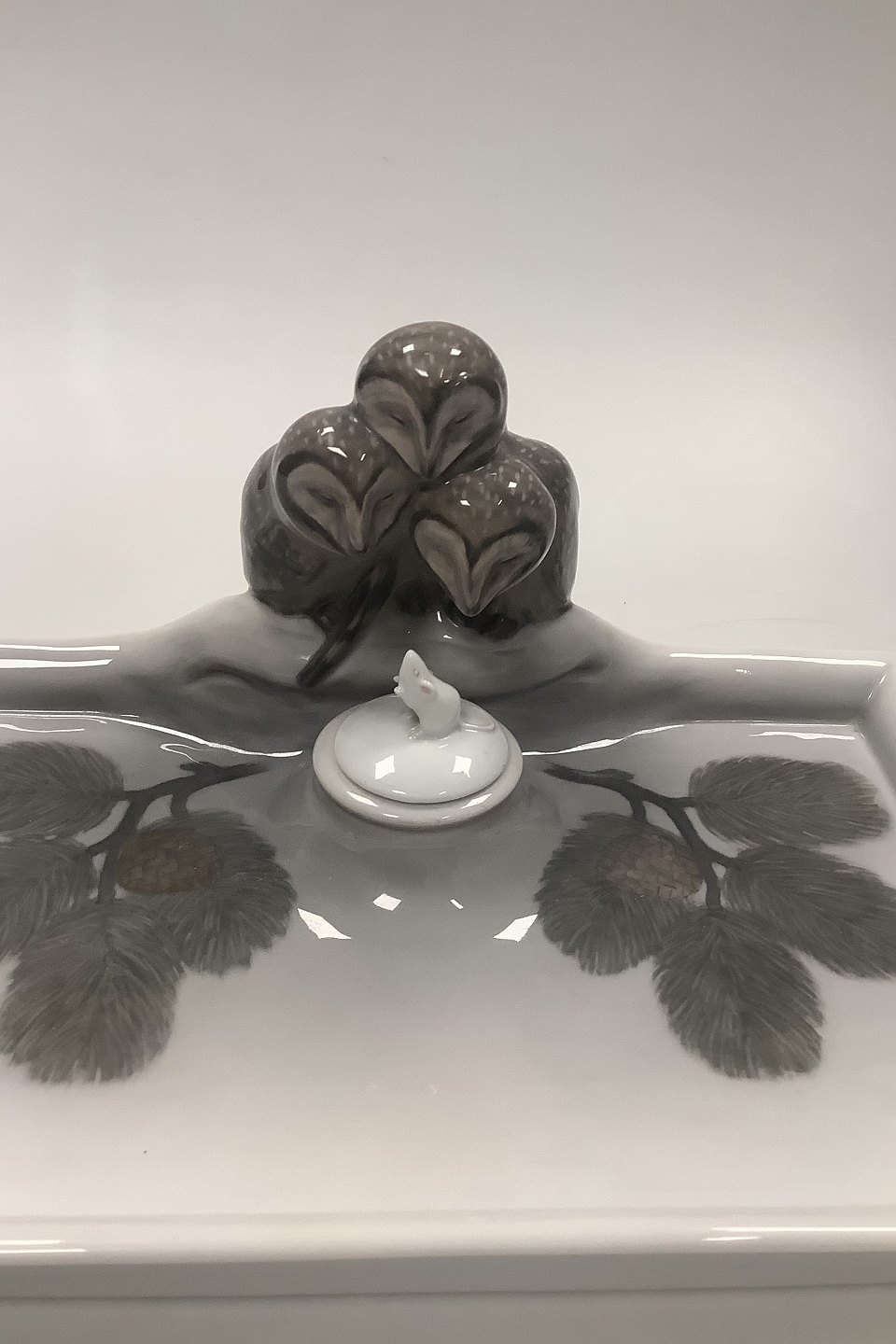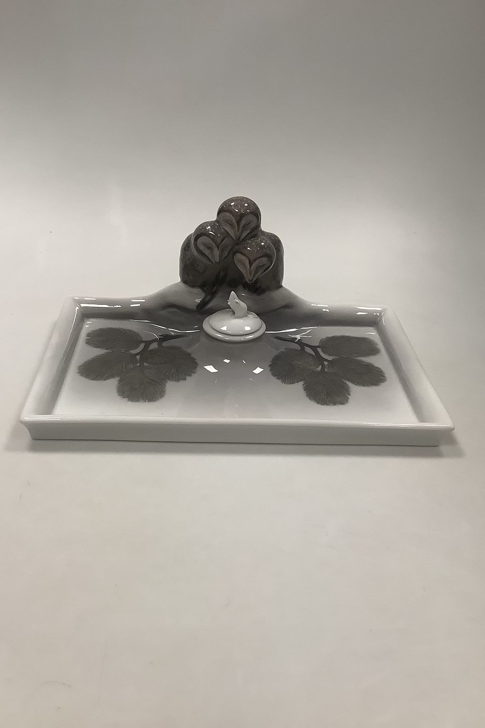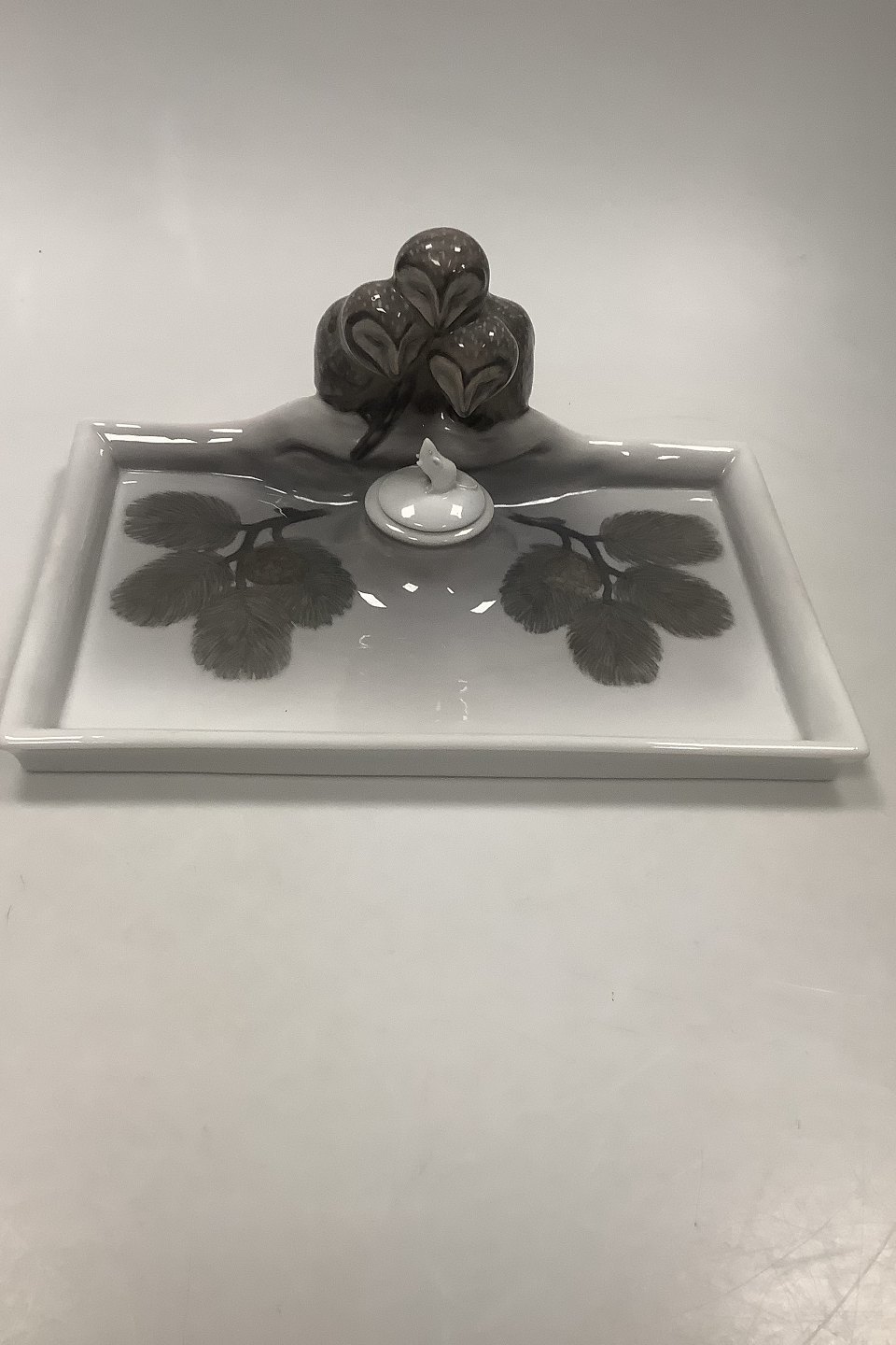 Royal Copenhagen Art Nouveau Inkwell Set with 3 Owls and 1 mouse No. 2177