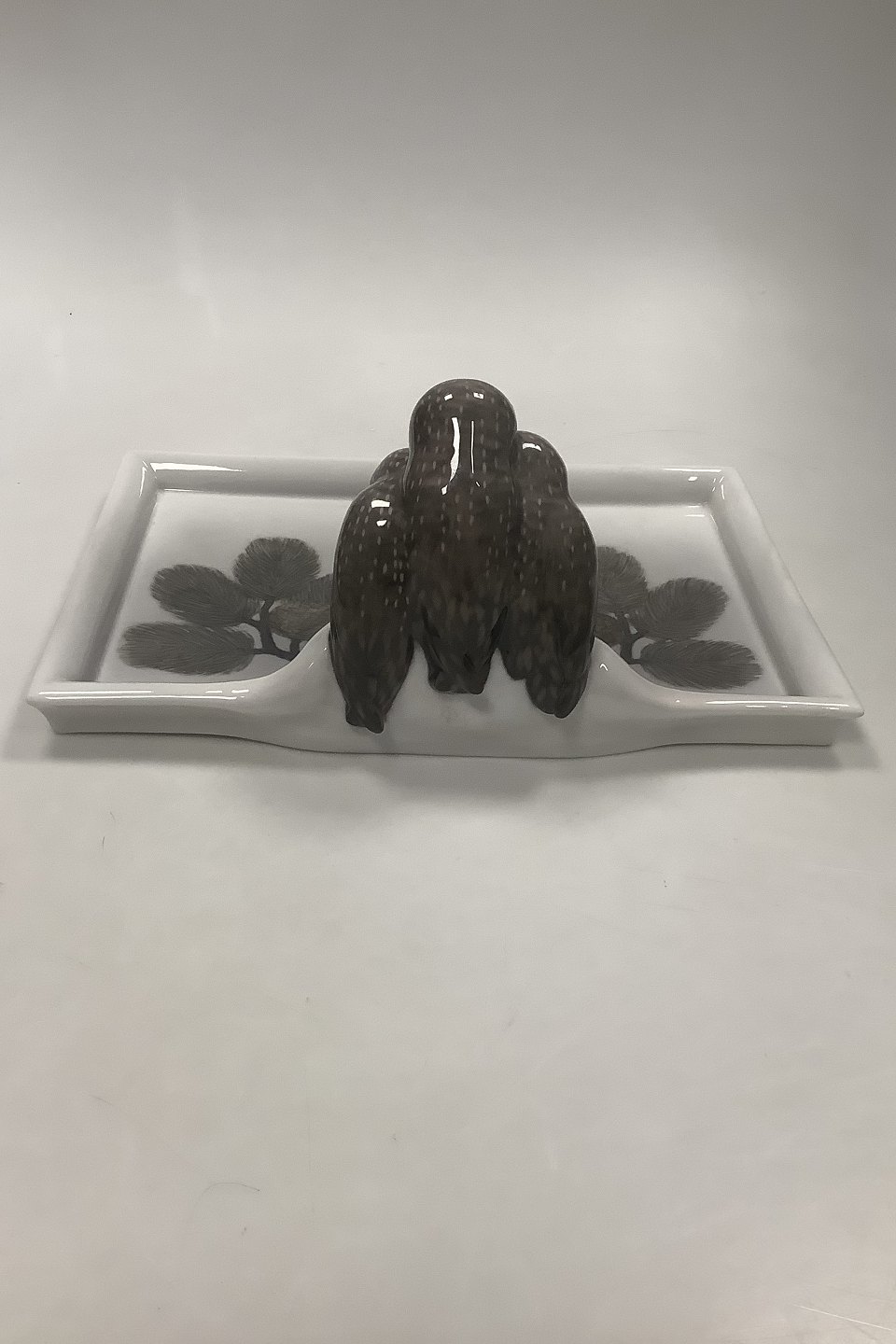 Royal Copenhagen Art Nouveau Inkwell Set with 3 Owls and 1 mouse. Designed by Christian Thomsen