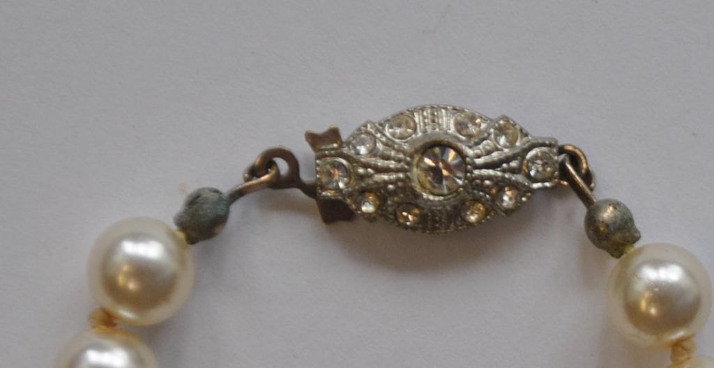 Pearl necklace with silver plated clasp, 20th century. Length: 60 cm.