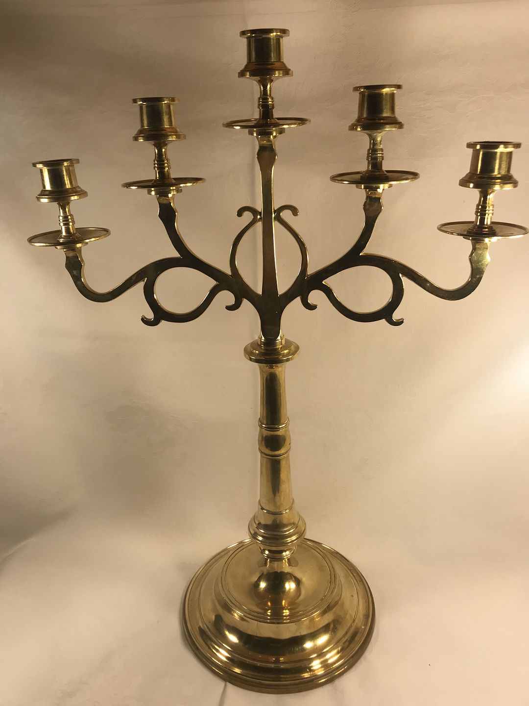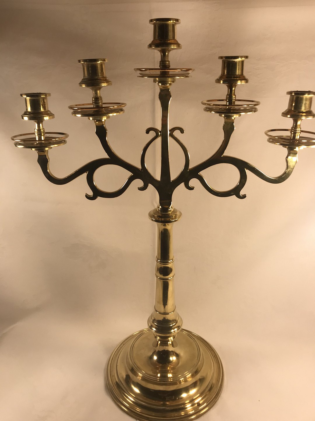 5 arm lysestager i messing fra 1900 tal