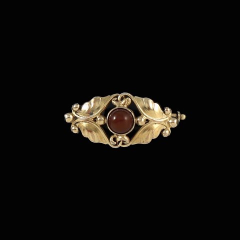 Georg Jensen. Broche i forgyldt sølv med karneol #224.