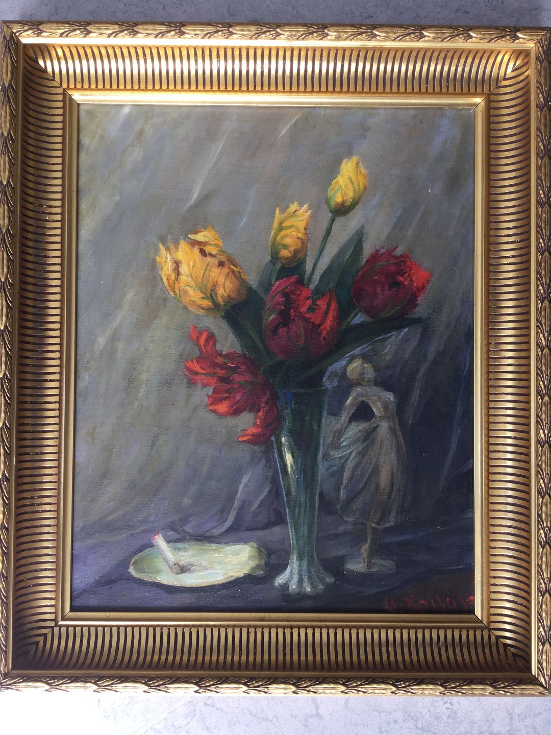 Maleri af Boris Krilov 1965 - Opstilling med vase og statuette.