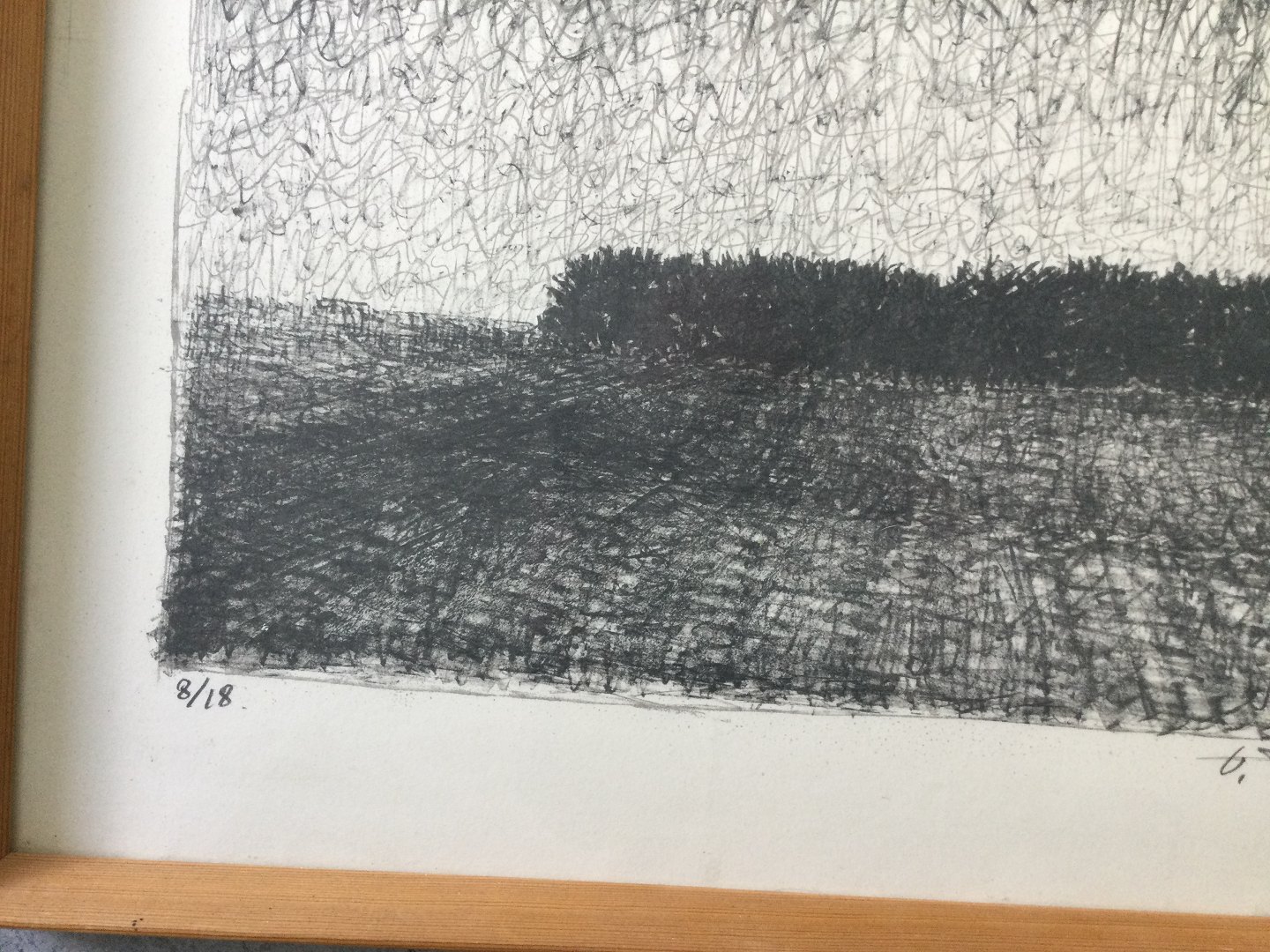 Litografi af Valdemar Foersom Hegndal - Skovbryn, skumring 1971.