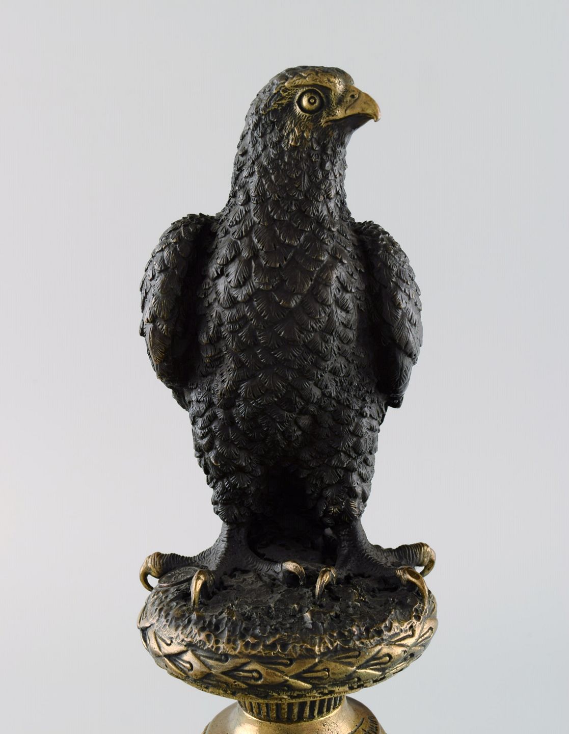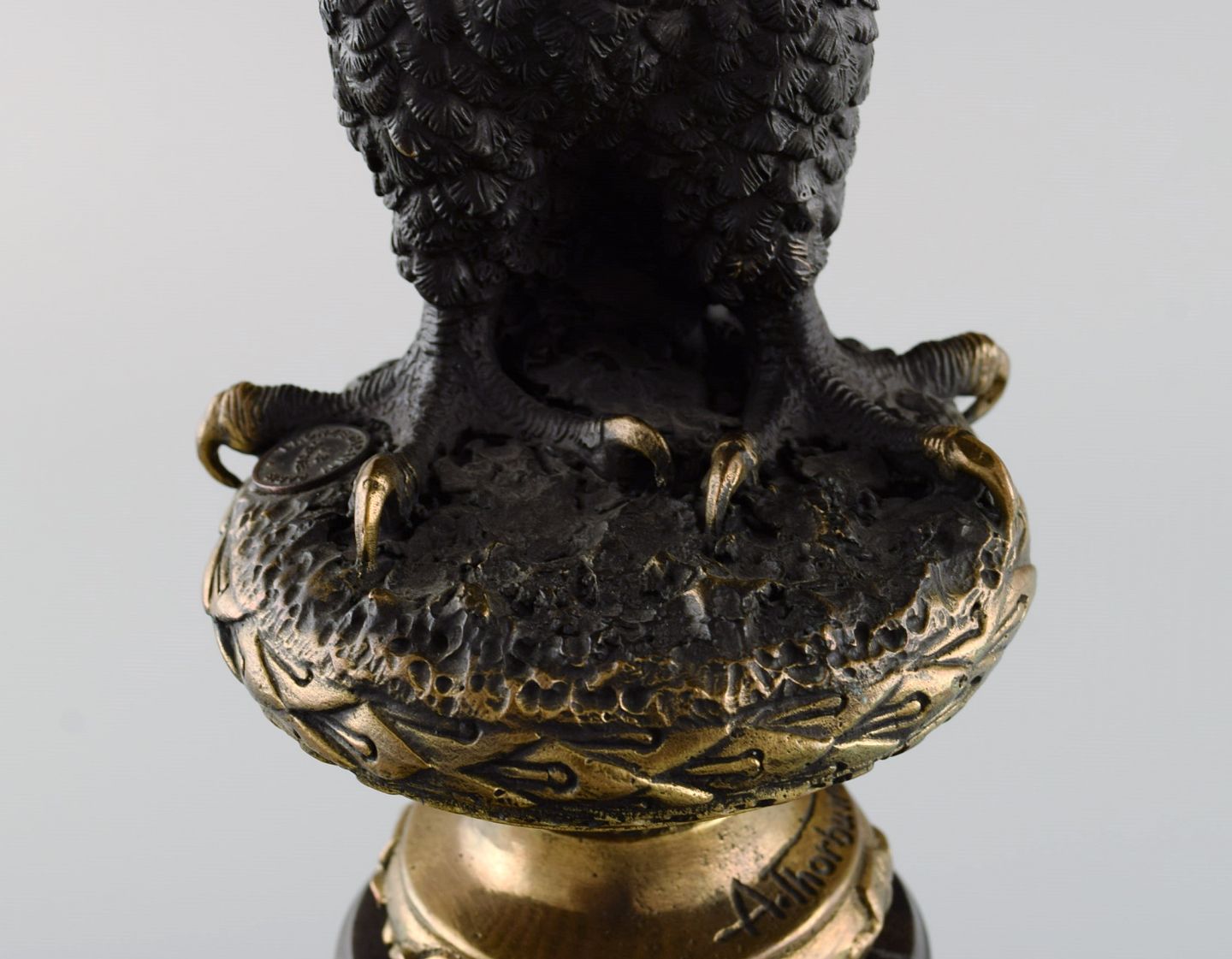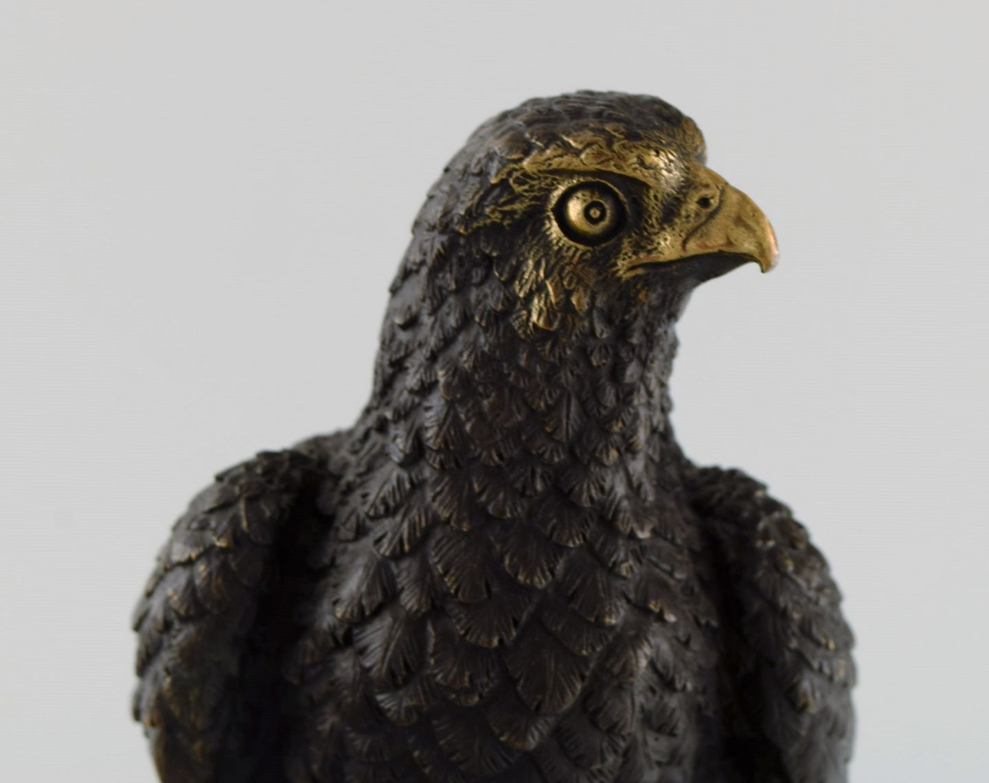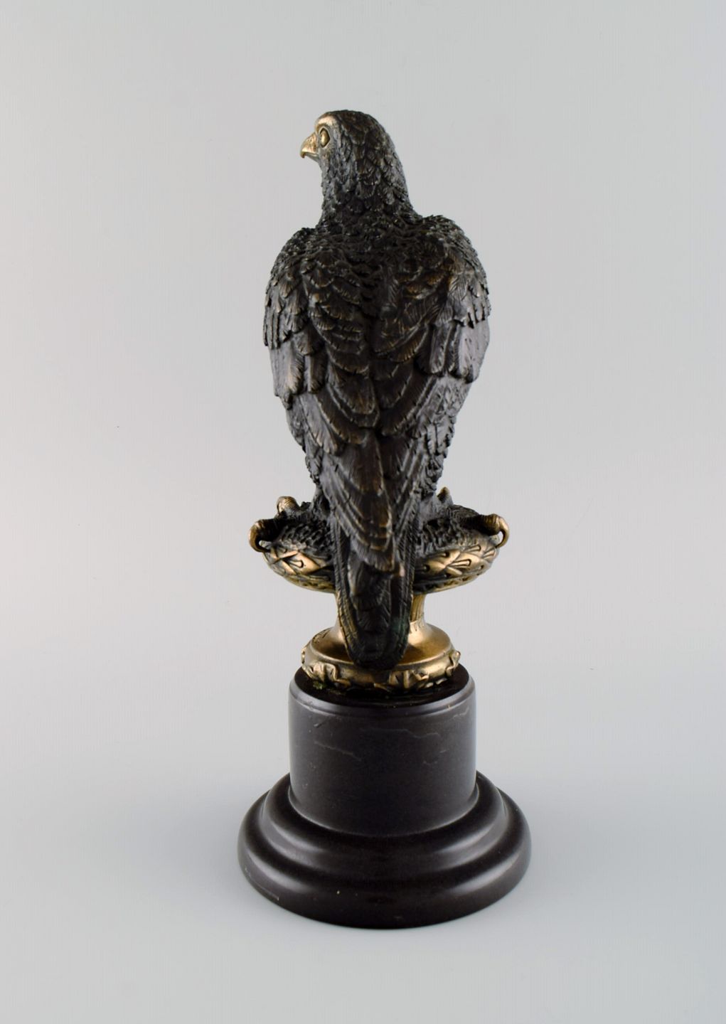 Archibald Thorburn (1860-1935), Skotland. Rovfugl i massiv bronze på sort marmorbase. Tidligt 1900-tallet.