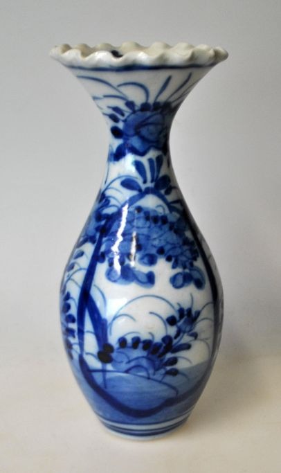 Arita vase, Japan, 19th century. Blue painted with flowers. With ruffled edge. H .: 19.5 cm.