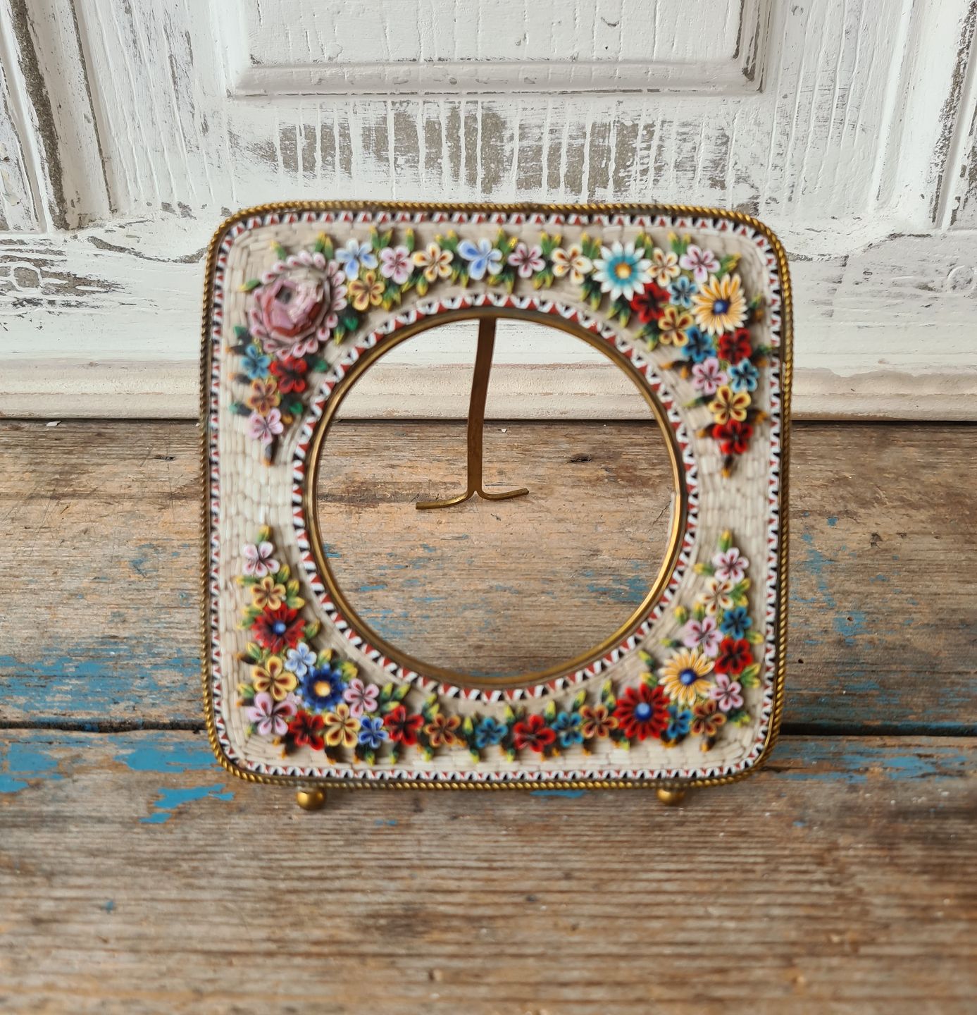 Smuk gammel italiensk billedramme - Micro Mosaic Millefiori