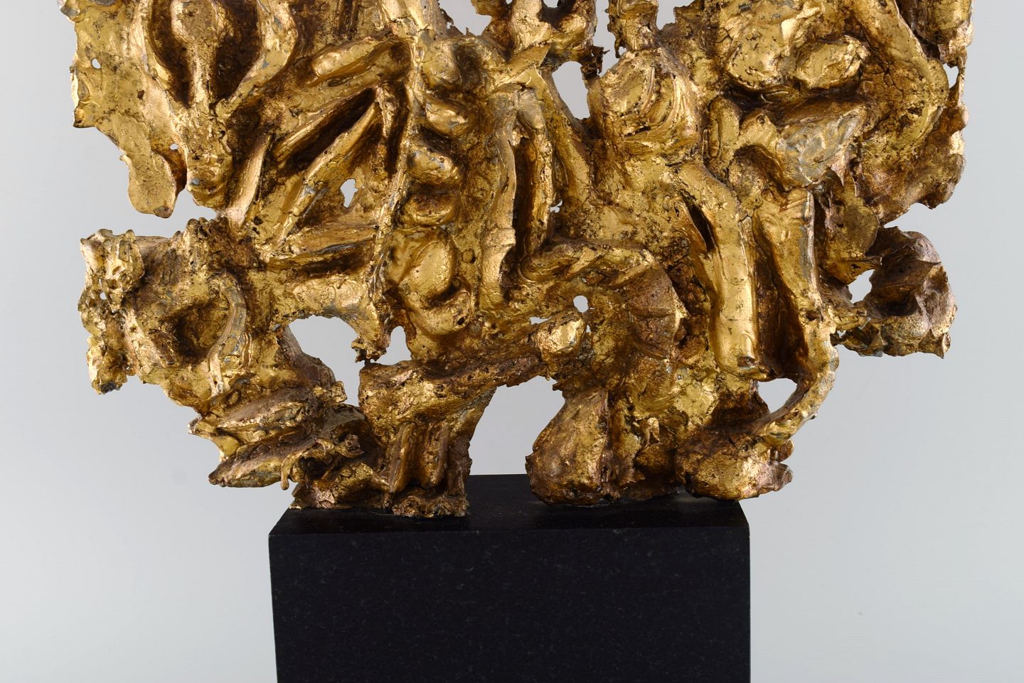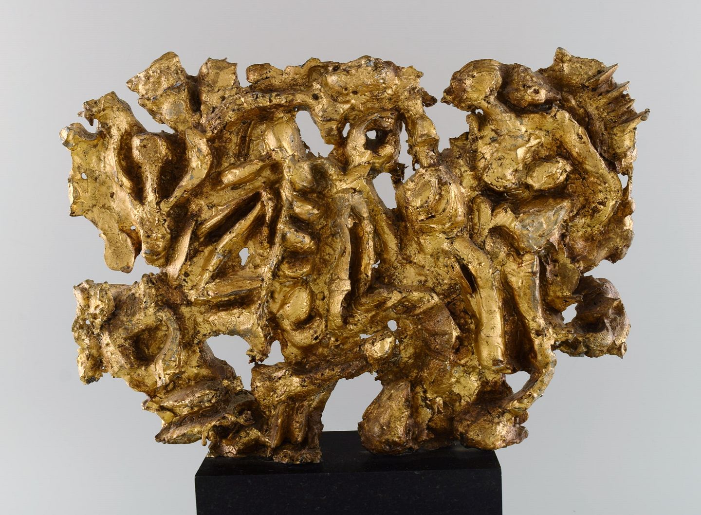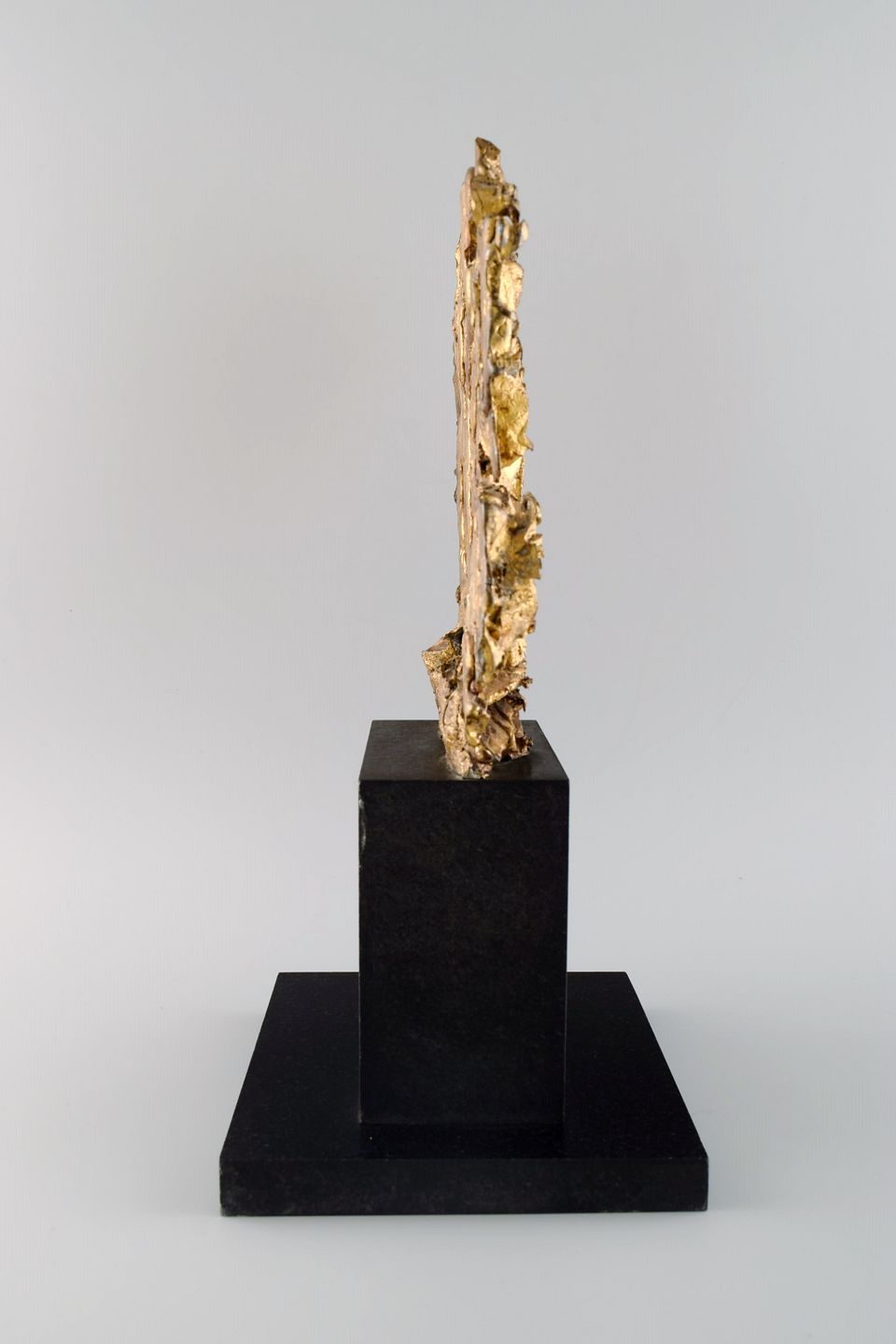 European sculptor. Large sculpture in gold decorated metal on marble plinth. Late 20th century.