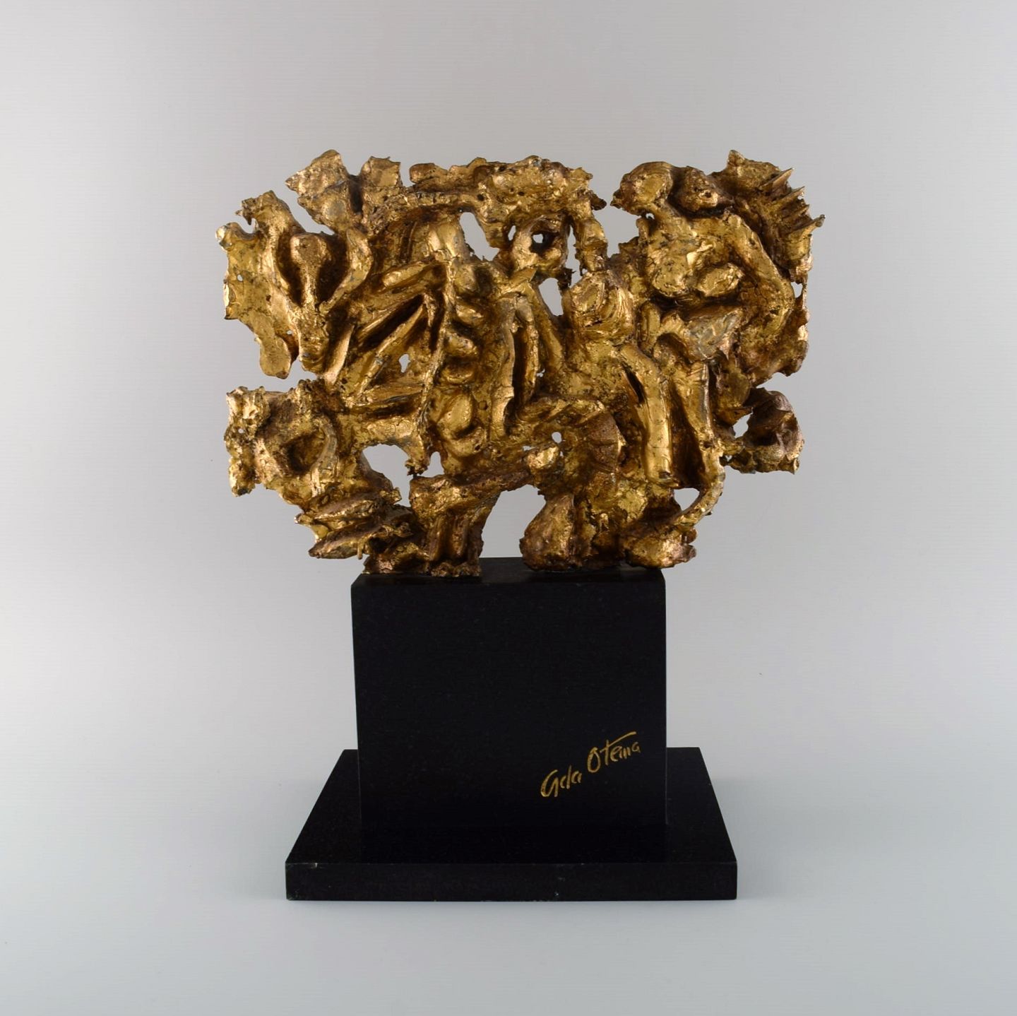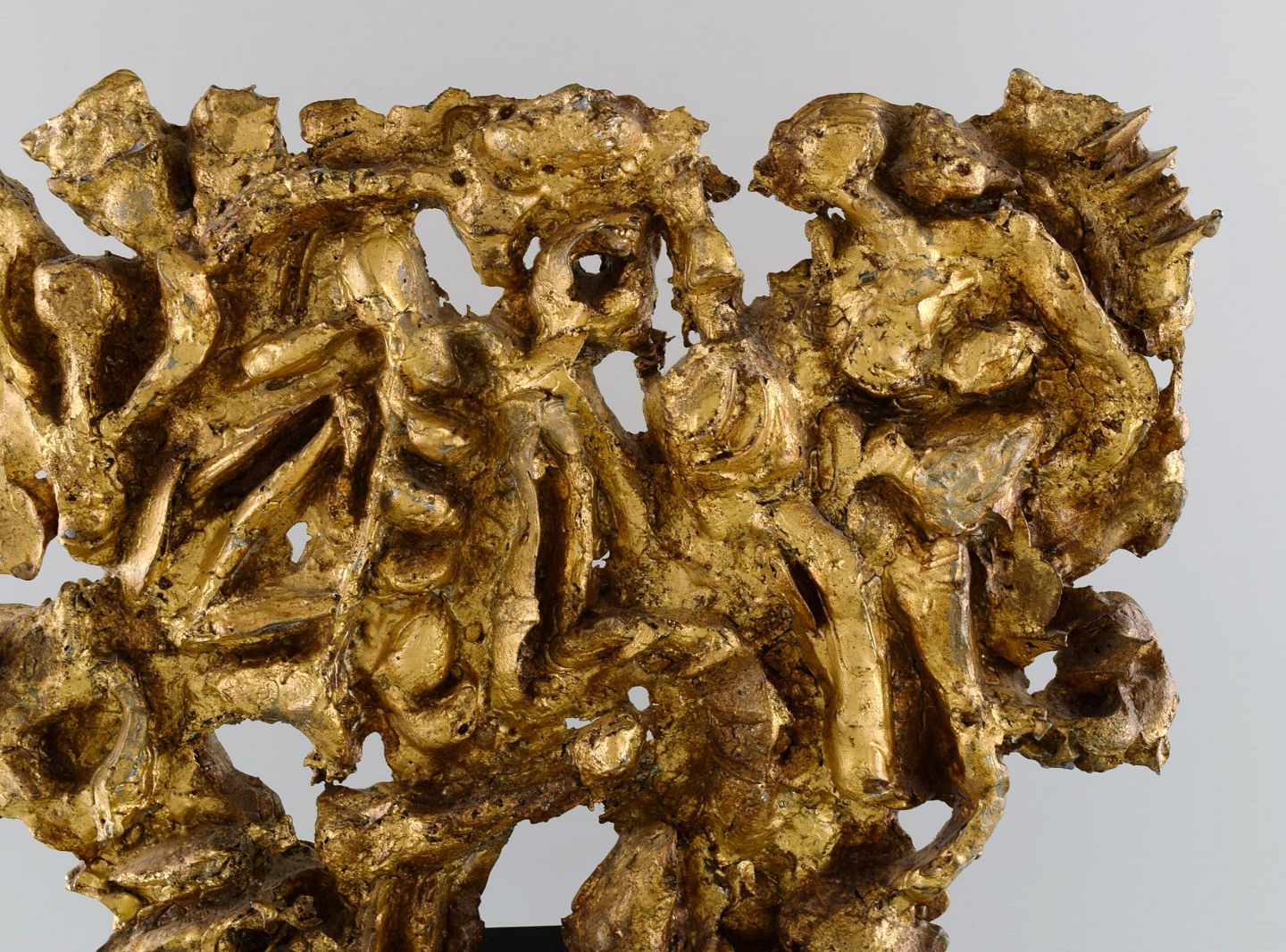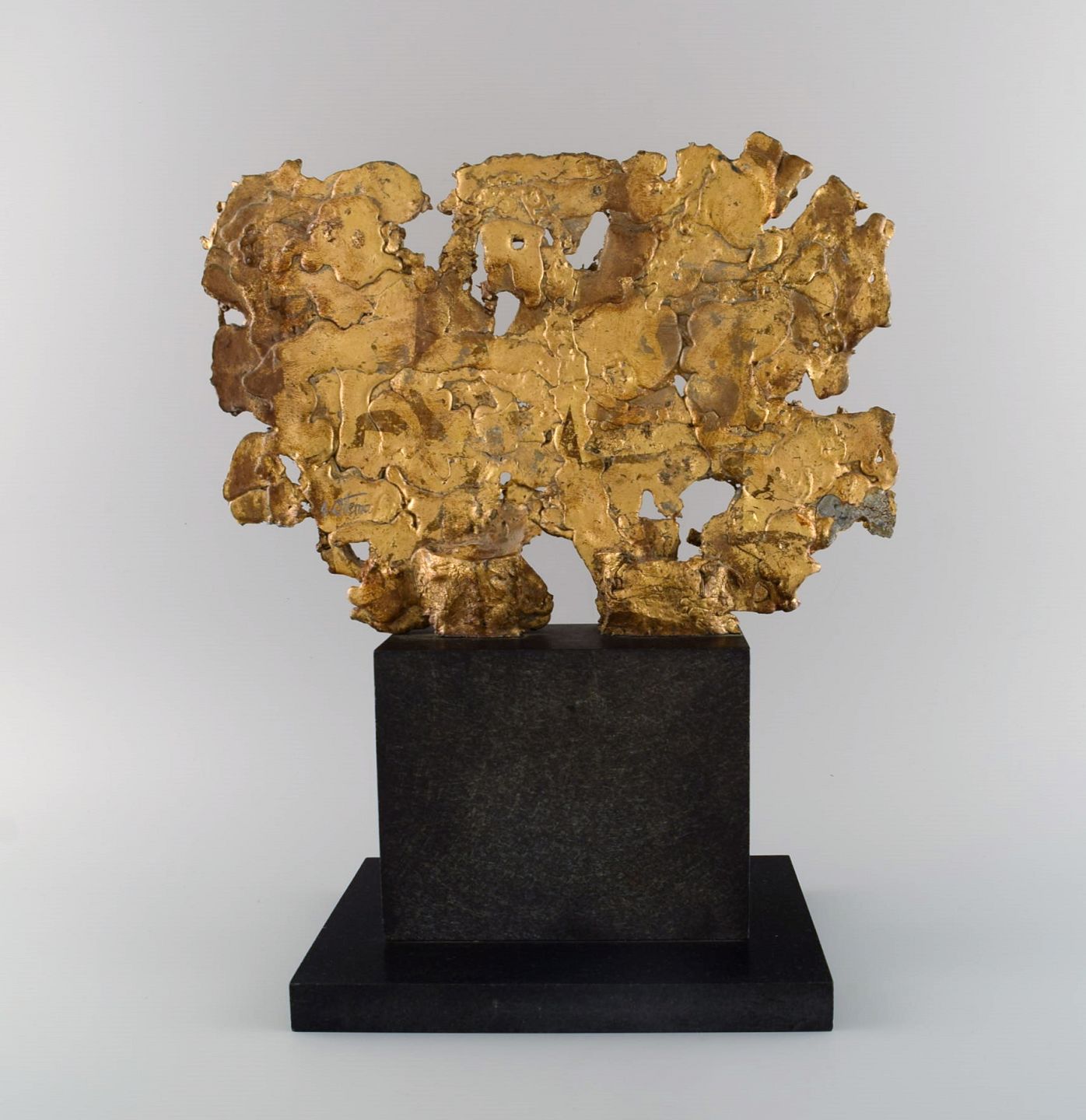 European sculptor. Large sculpture in gold decorated metal on marble plinth. Late 20th century.