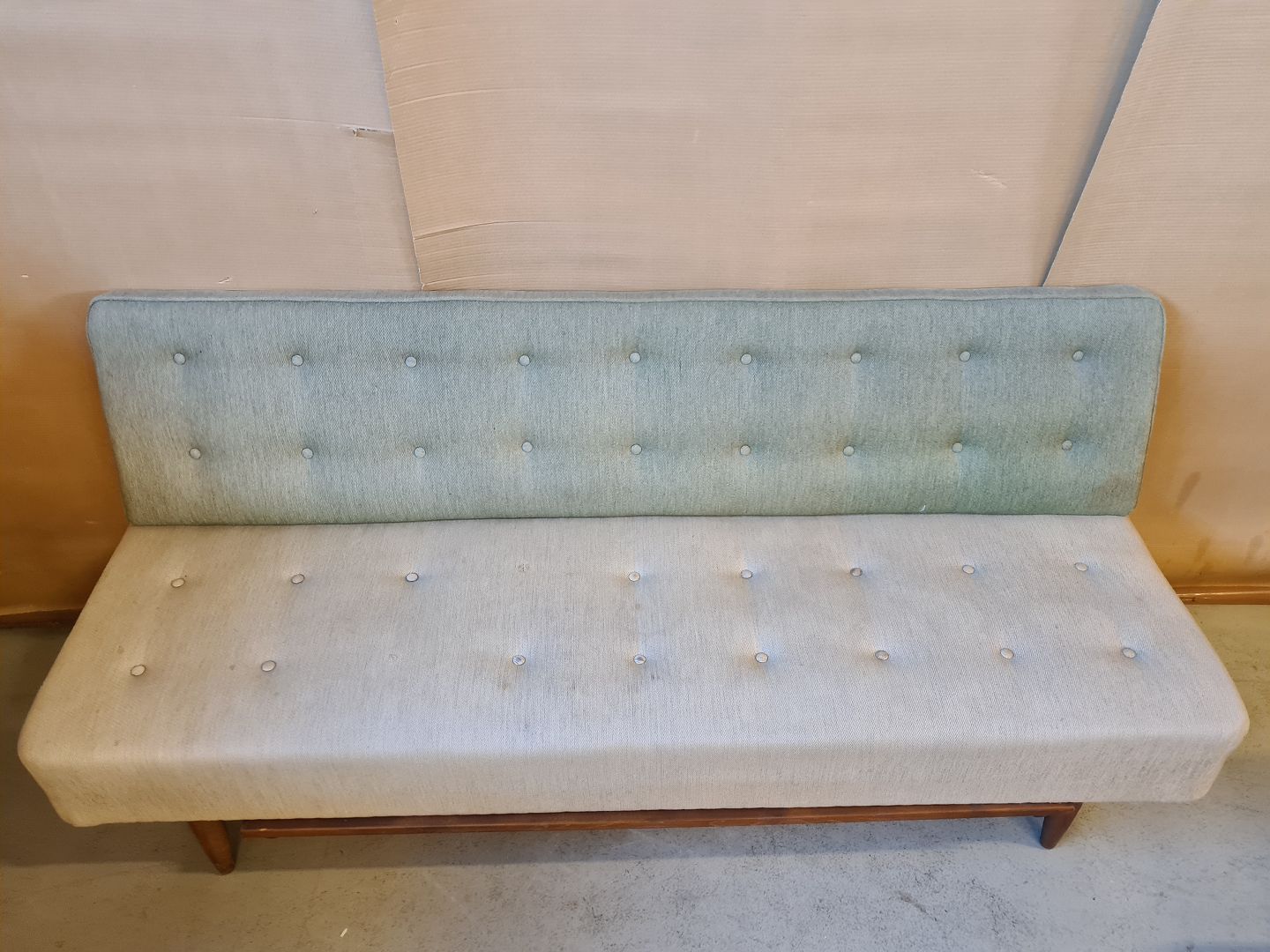 Briks med løs ryg og skuffe fra 1950erne.