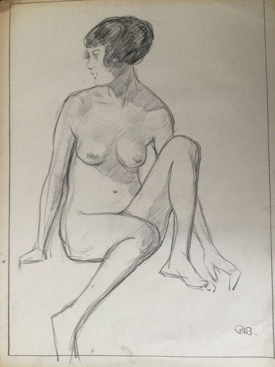 Tegning af Robert Büchtger - Studie af Nøgen kvinde.