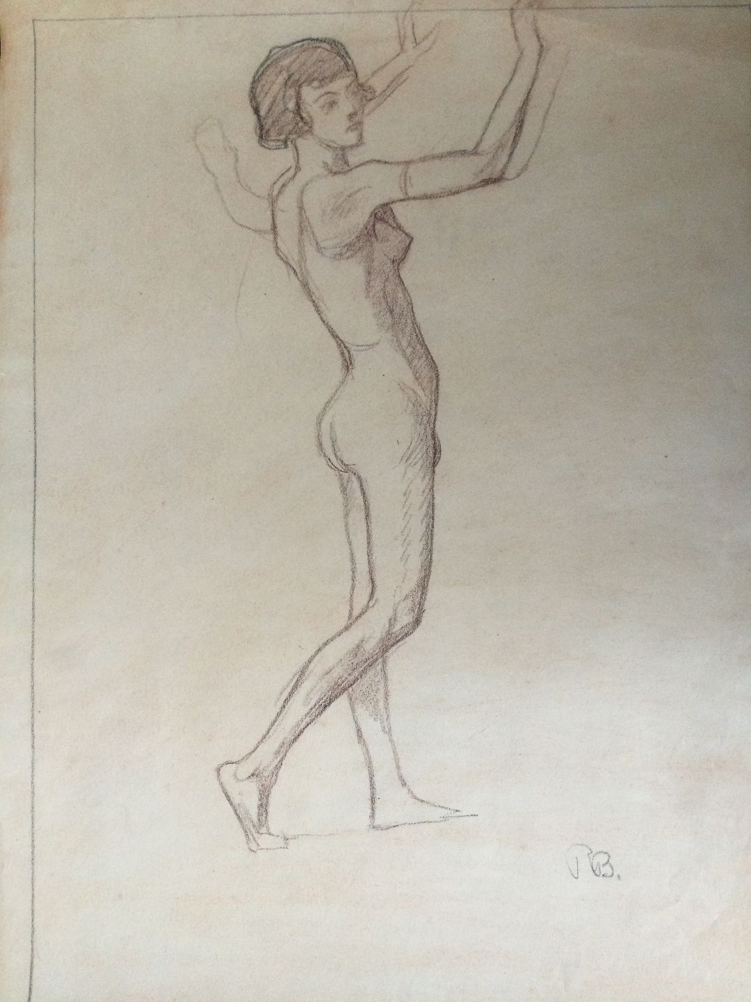 Tegning af Robert Büchtger - Studie af Nøgen kvinde.