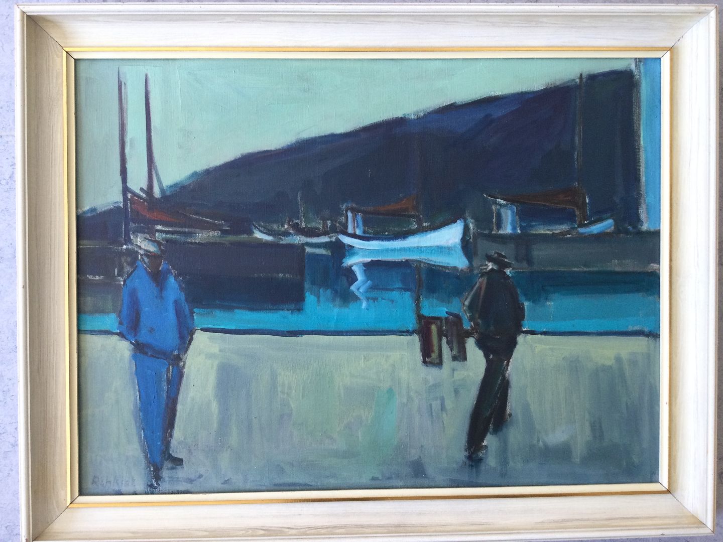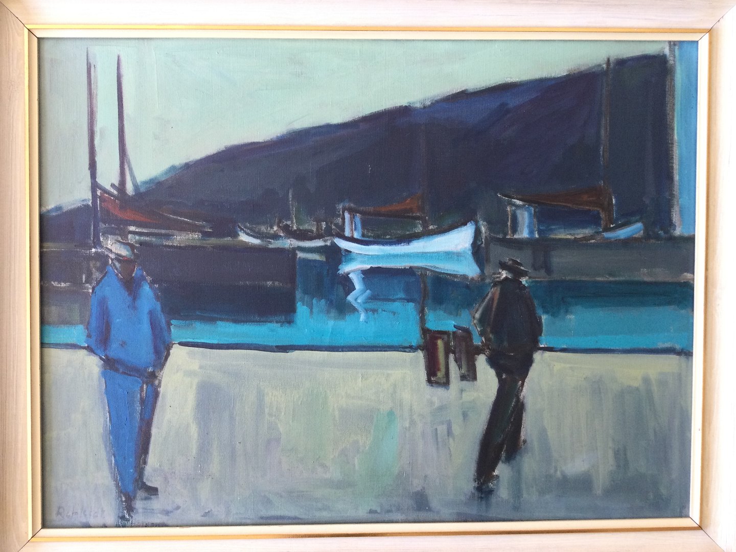 Maleri af Rehfeldt Pedersen - Personer på havnen.