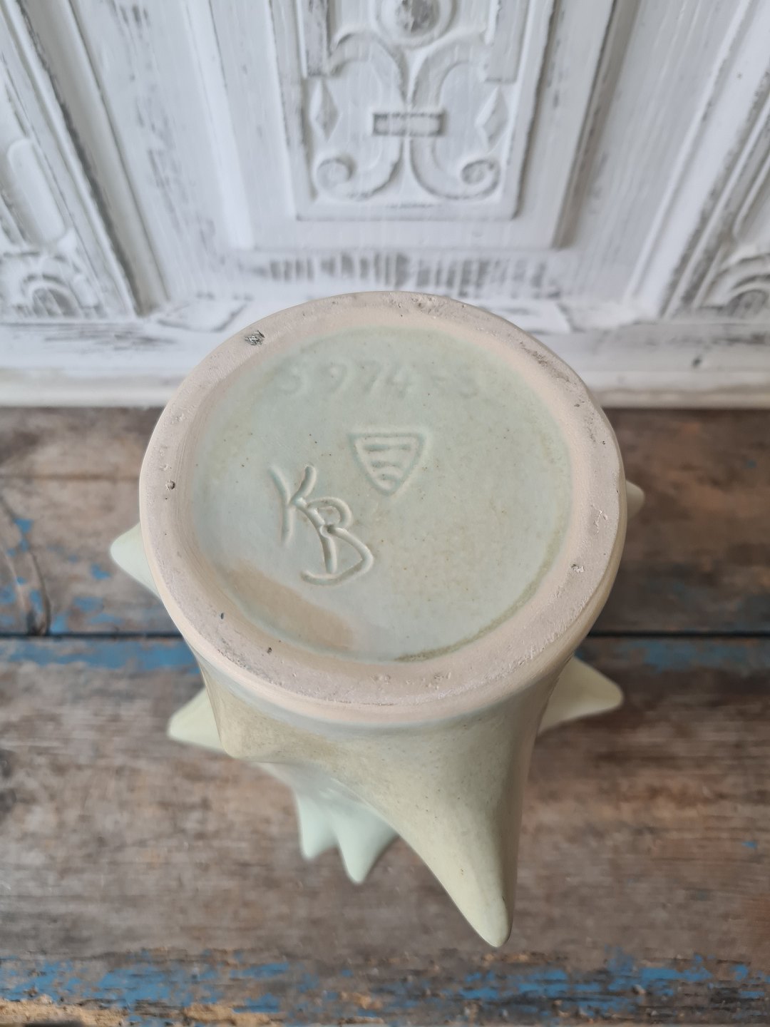 Knud Basse for Michael Andersen - stor rosentorn vase med smuk sart grøn glasur.