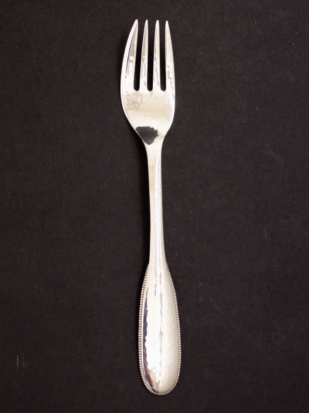 Evald Nielsen lightly hammered sterling silver fork arve silver no. 14 "Pearl" 17, 5 cm. item no. 504033