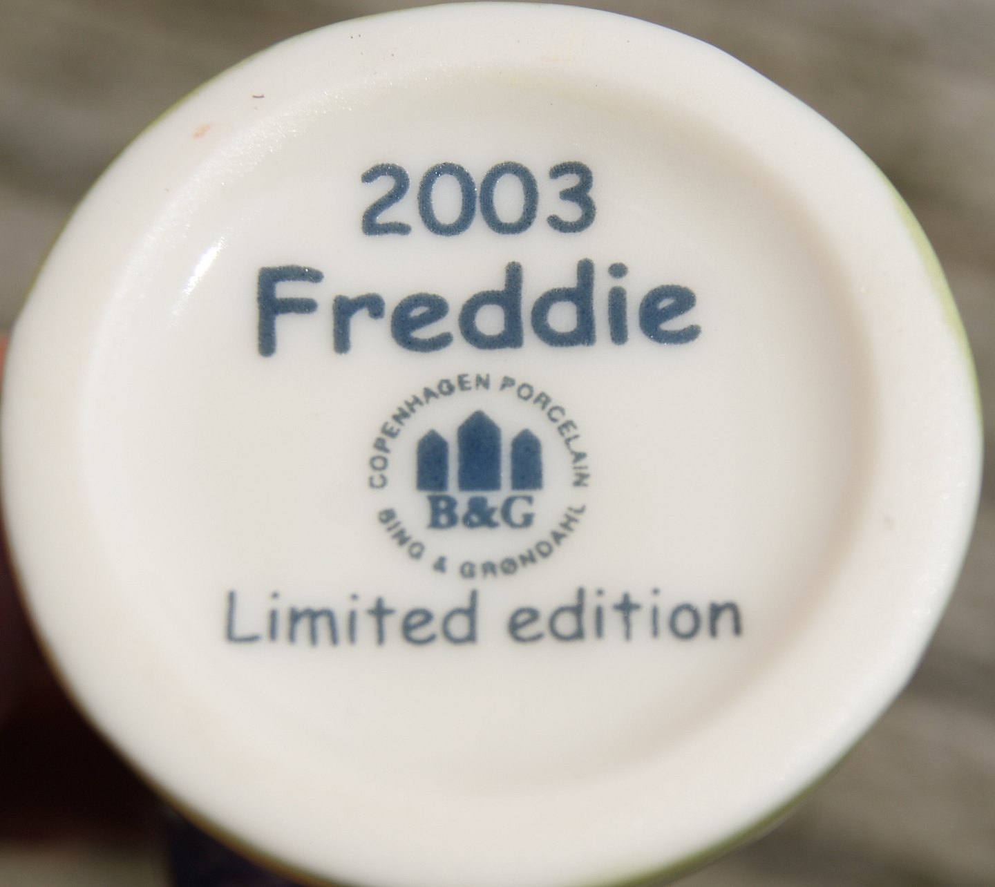 Bing & Grøndahl B&G Årsfigur fra 2003 i 1.sort. i serien Freddie og hans venner.