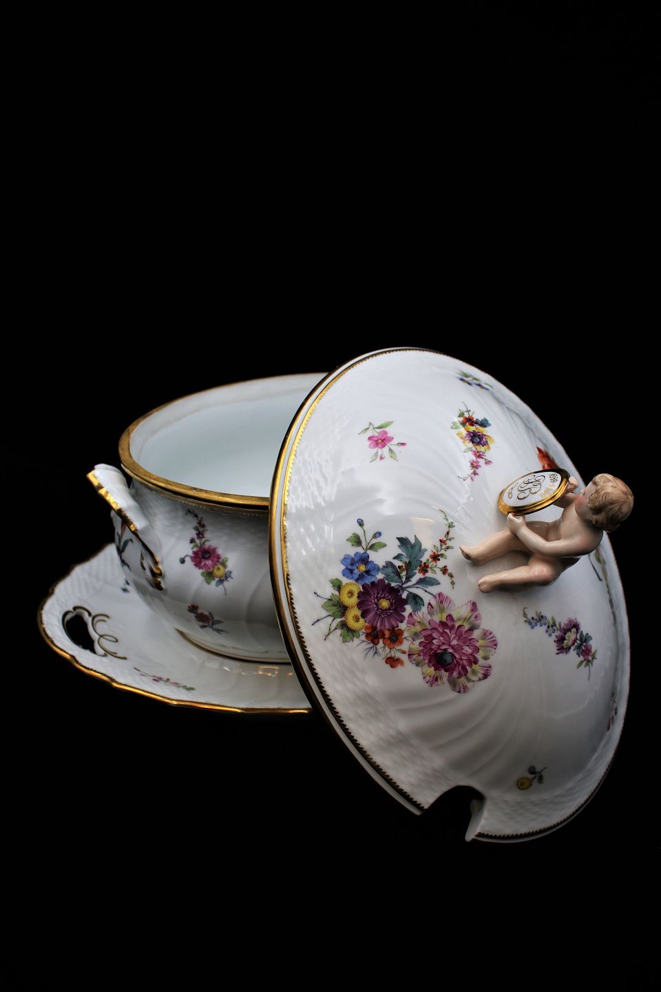 Antik Royal Copenhagen Fuld Saksisk Blomst Terrin med guld kanter