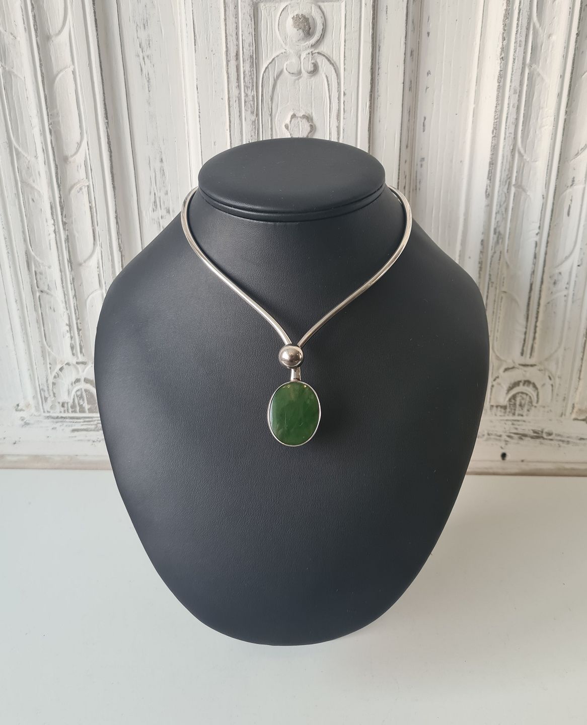 N.E.From klassisk halsring i sterlingsølv med mørkegrøn agat