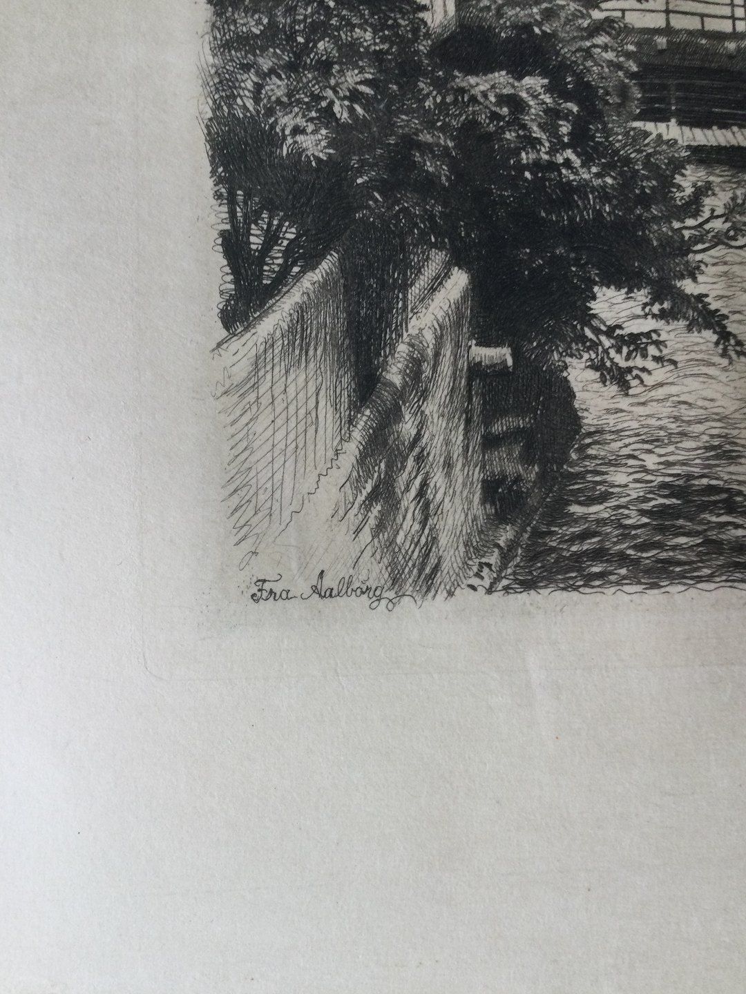 Radering af Peter Tom-Petersen - Fra Aalborg ved Apoteket 1906.