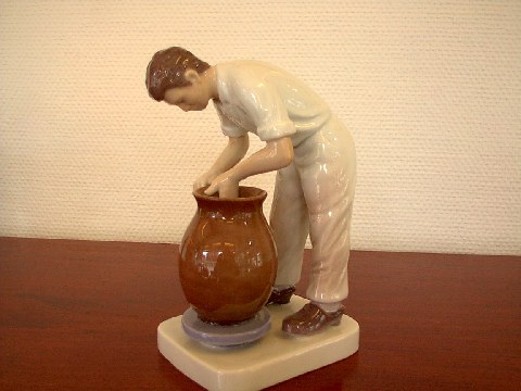 Bing & Grøndahl has produced this beautiful figurine of a ceramist. He has decoration numbe 2419 and is factory first. Height 19.5 cm. Length 11 cm. Perfect condition.
