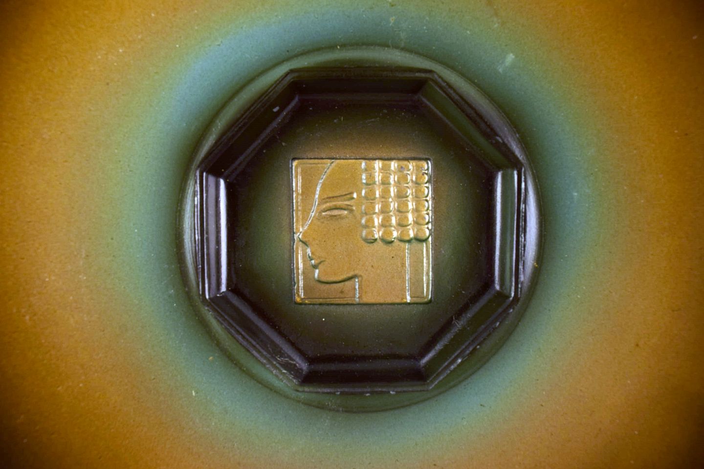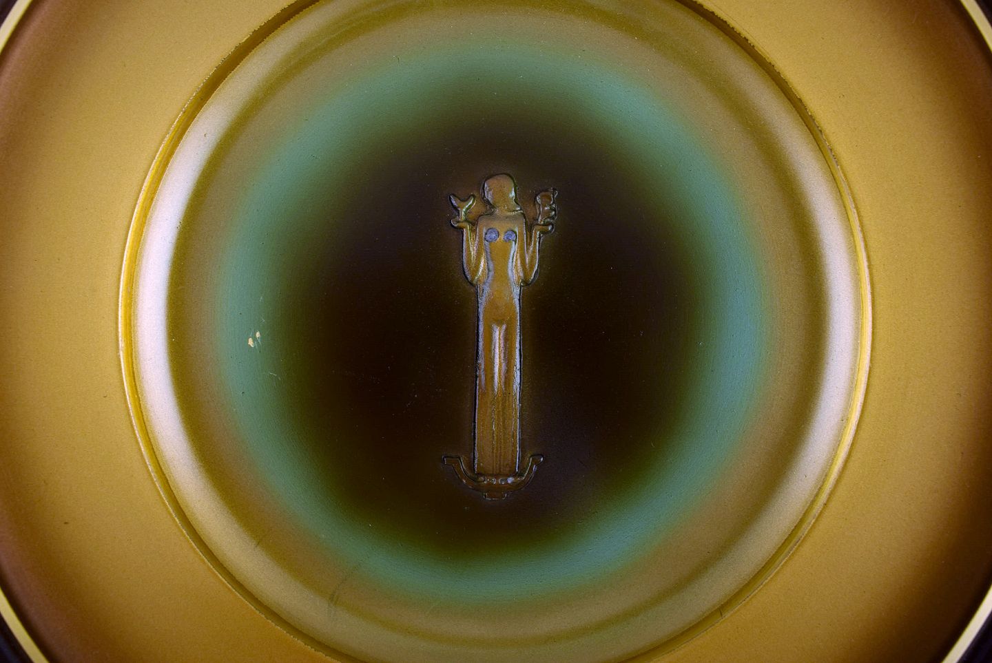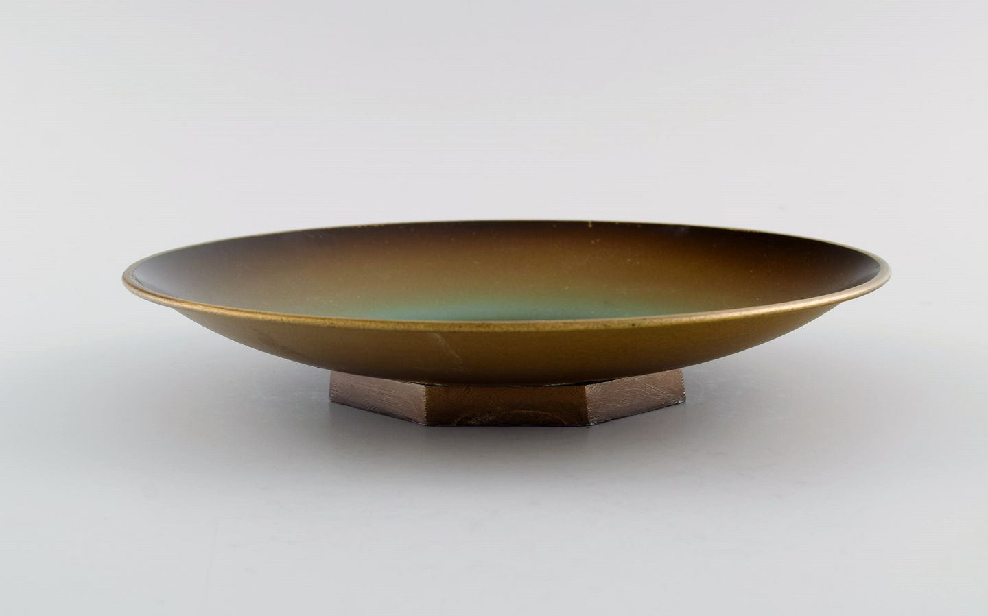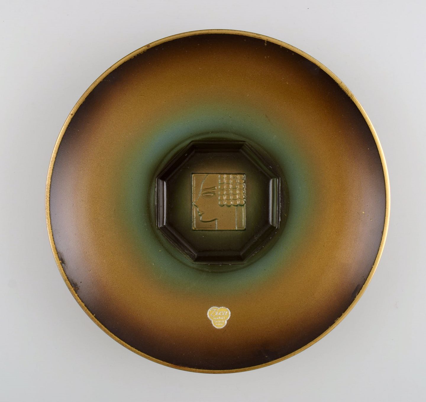 Zicu, Sverige. To art deco fade / skåle i patineret metal. Kvinde og ansigt i relief. Midt 1900-tallet.