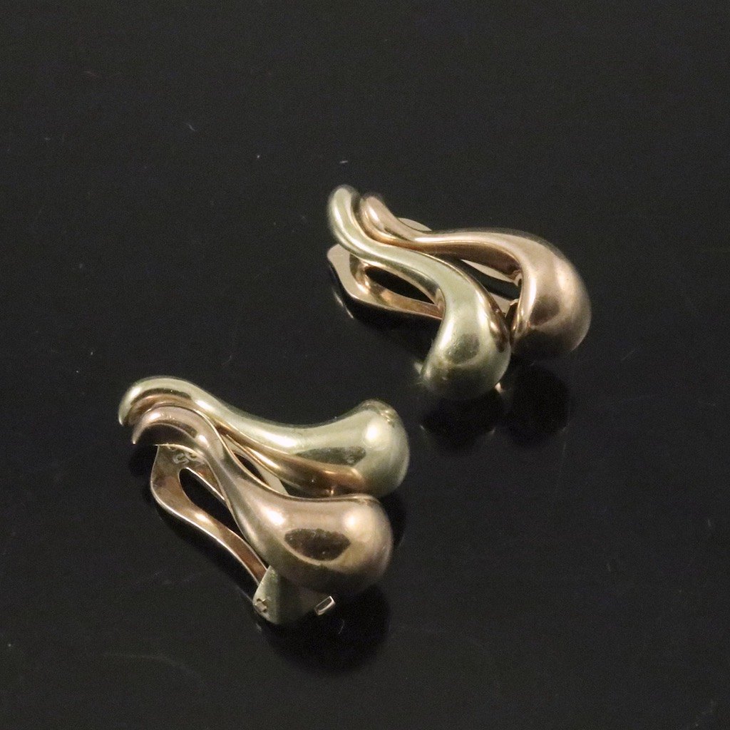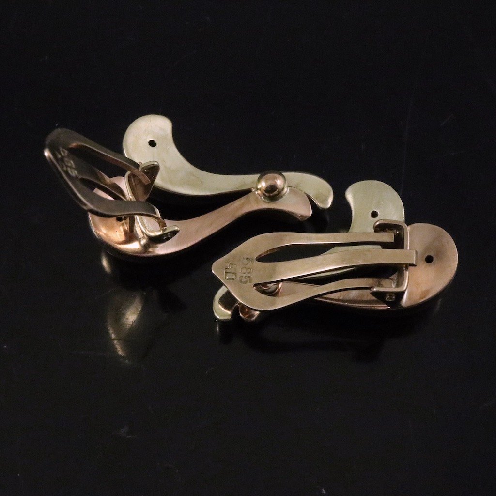 A. Dragsted. Øreklips i 14k guld og rødguld.