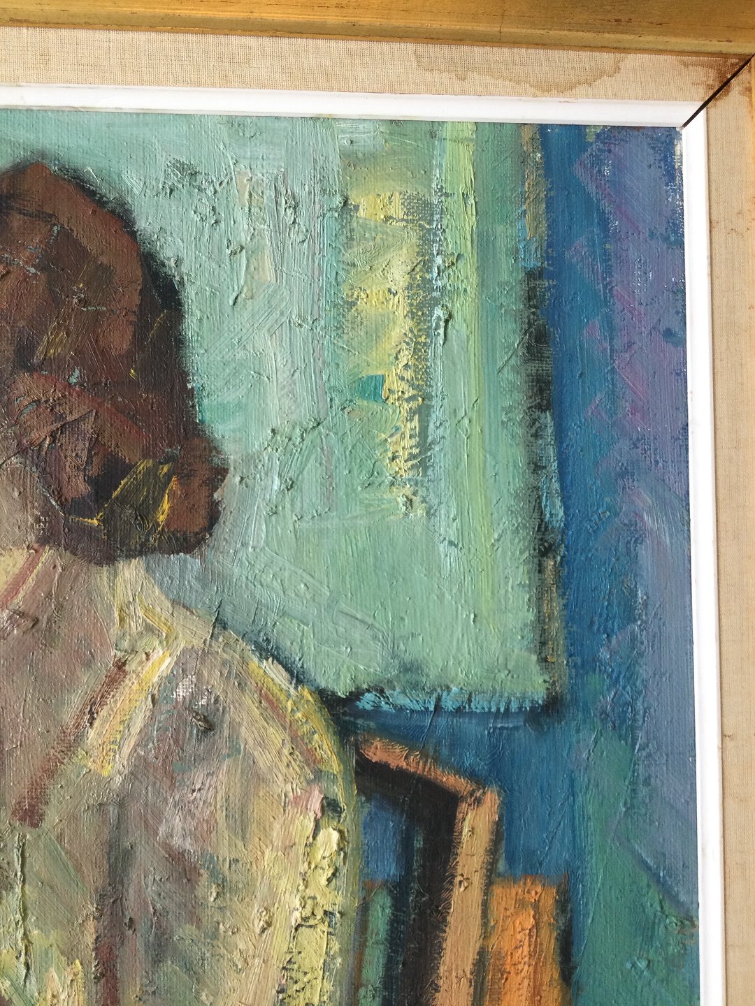 Fugtskjolder på hessian på rammen.