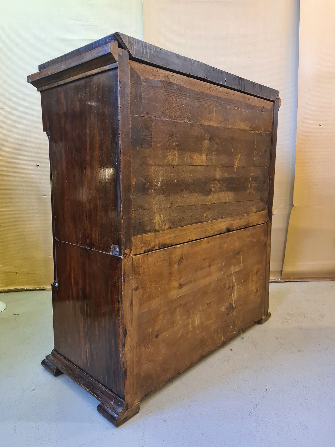 Dragkiste i fineret mahogni og bøgetræ, fra 1890erne.