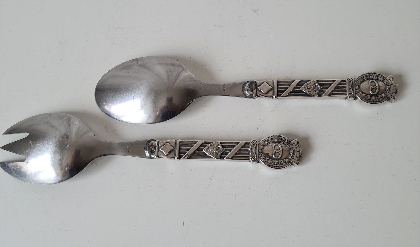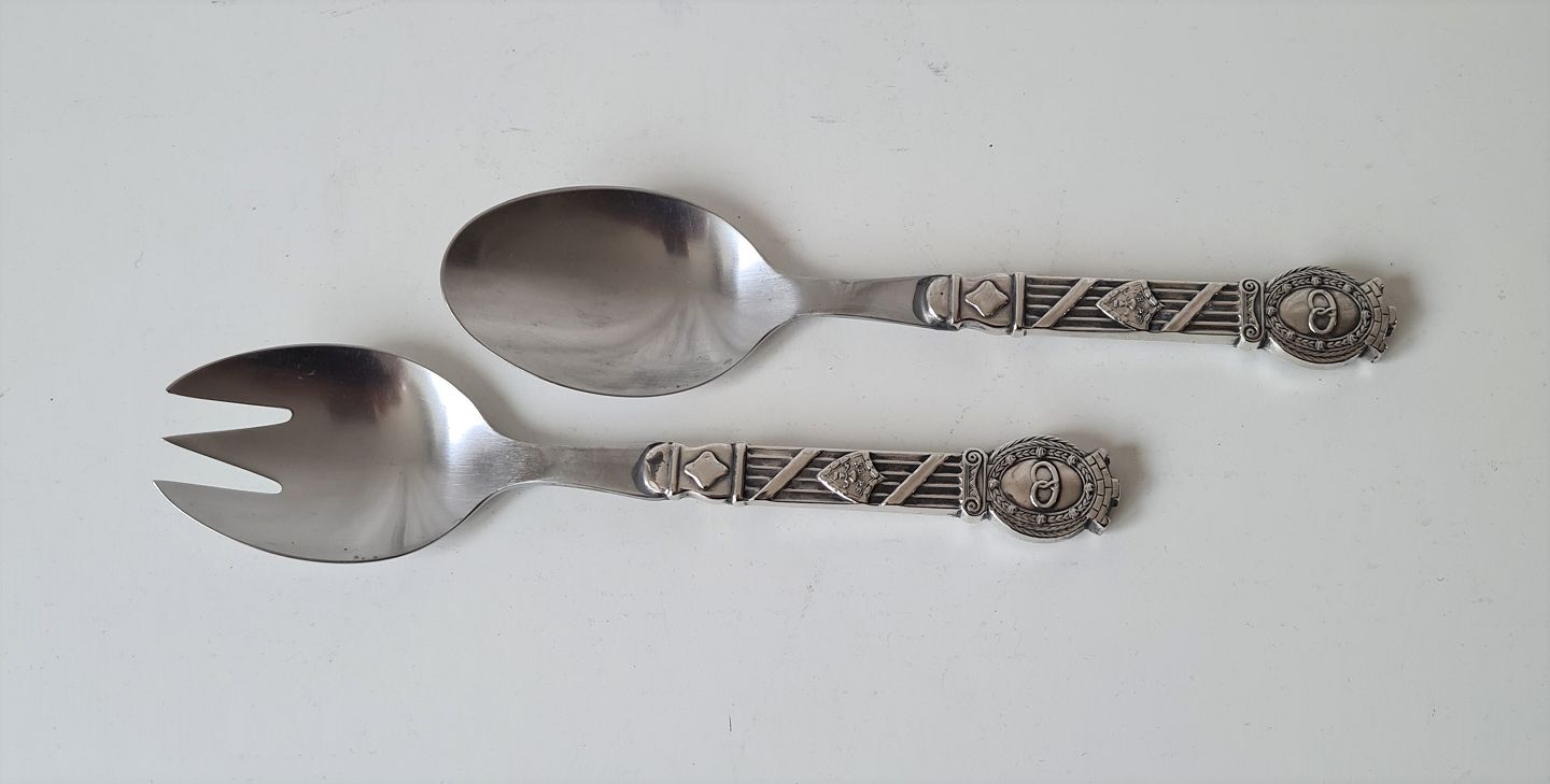 Salat sæt i sølv og stål dekoreret med bagerkringle