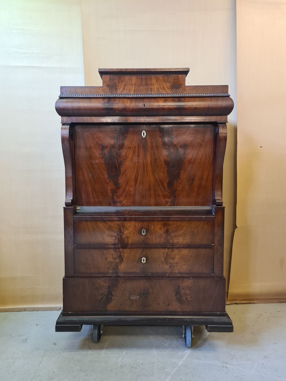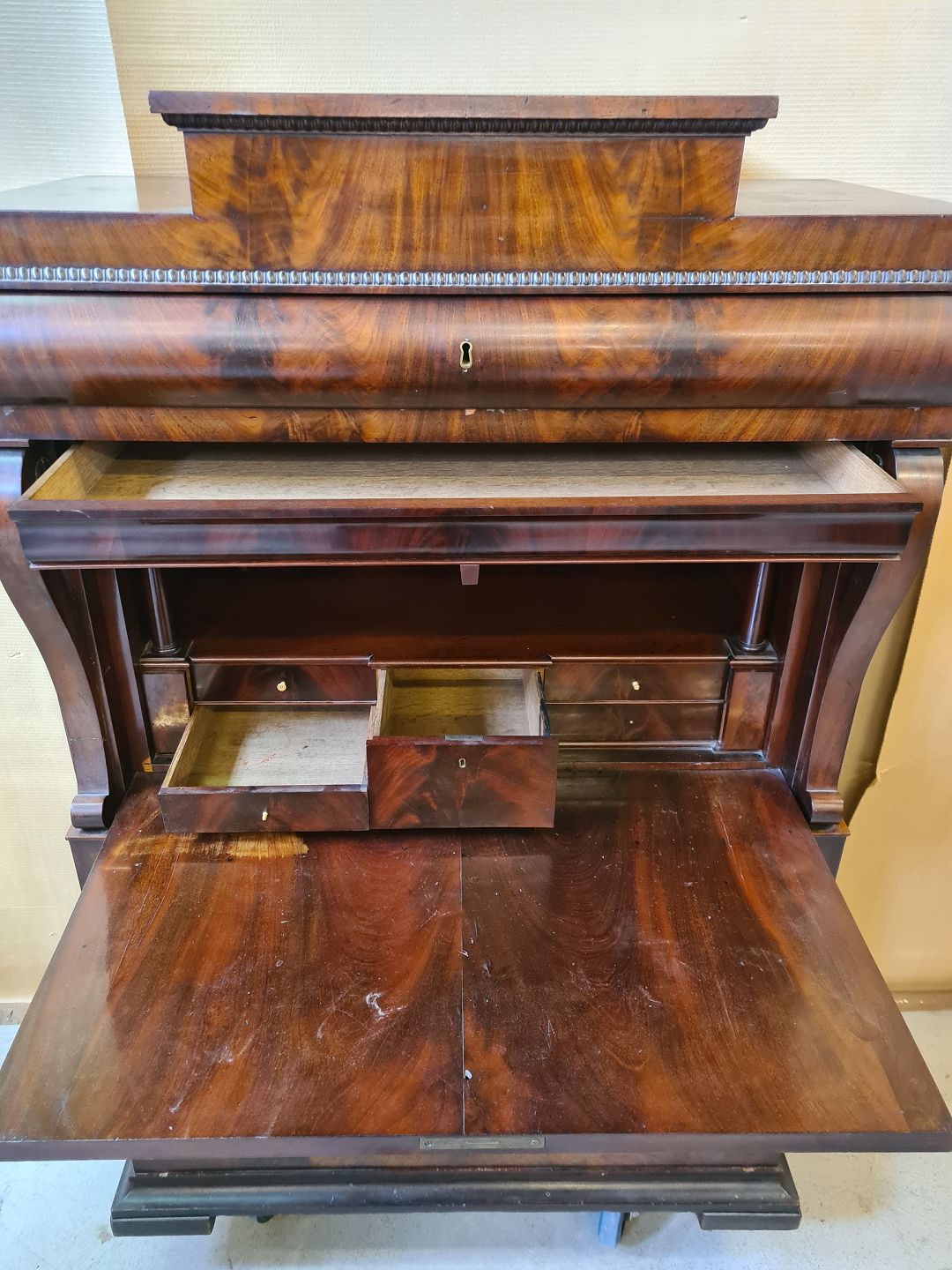 Sekretær i fineret mahogni, fra 1890erne.