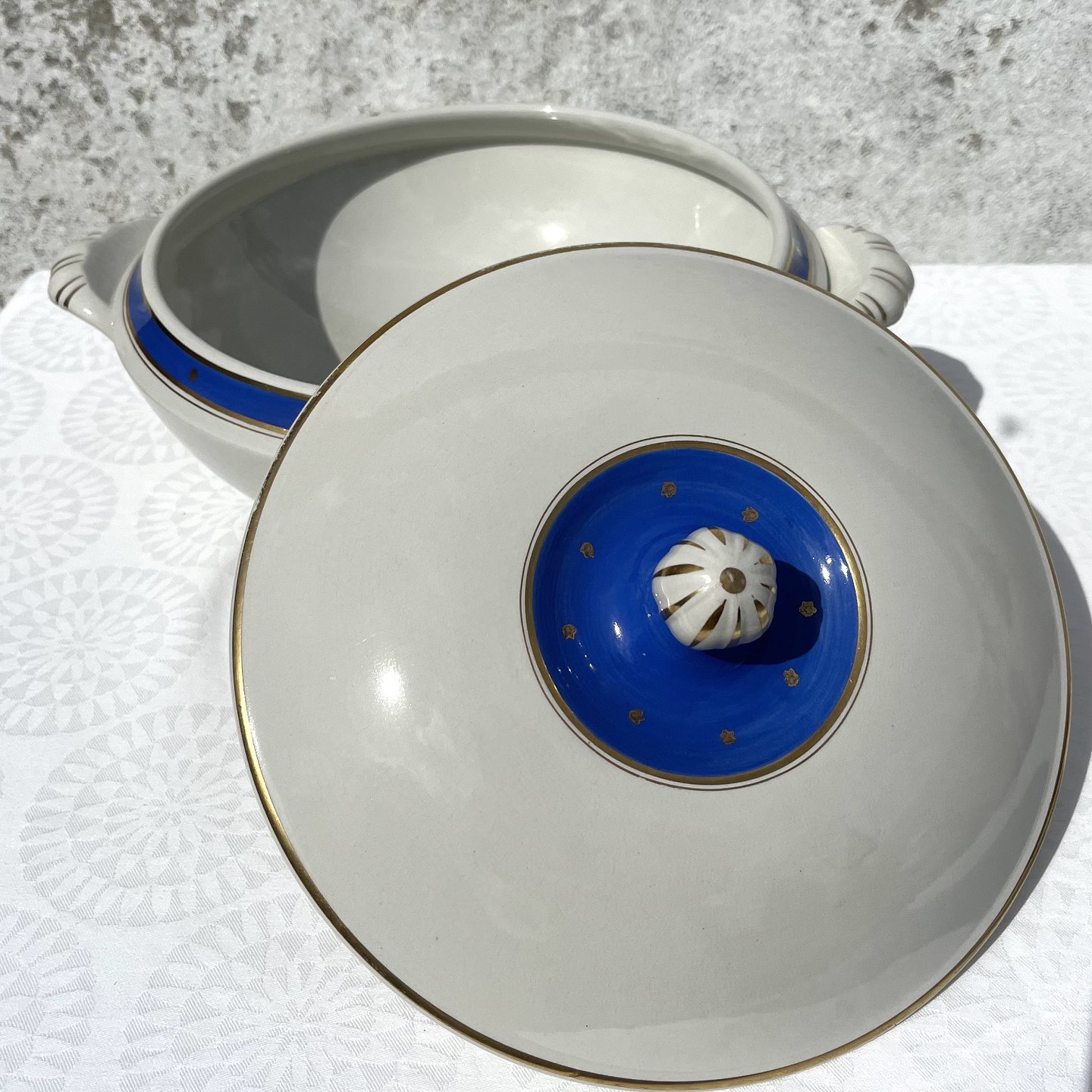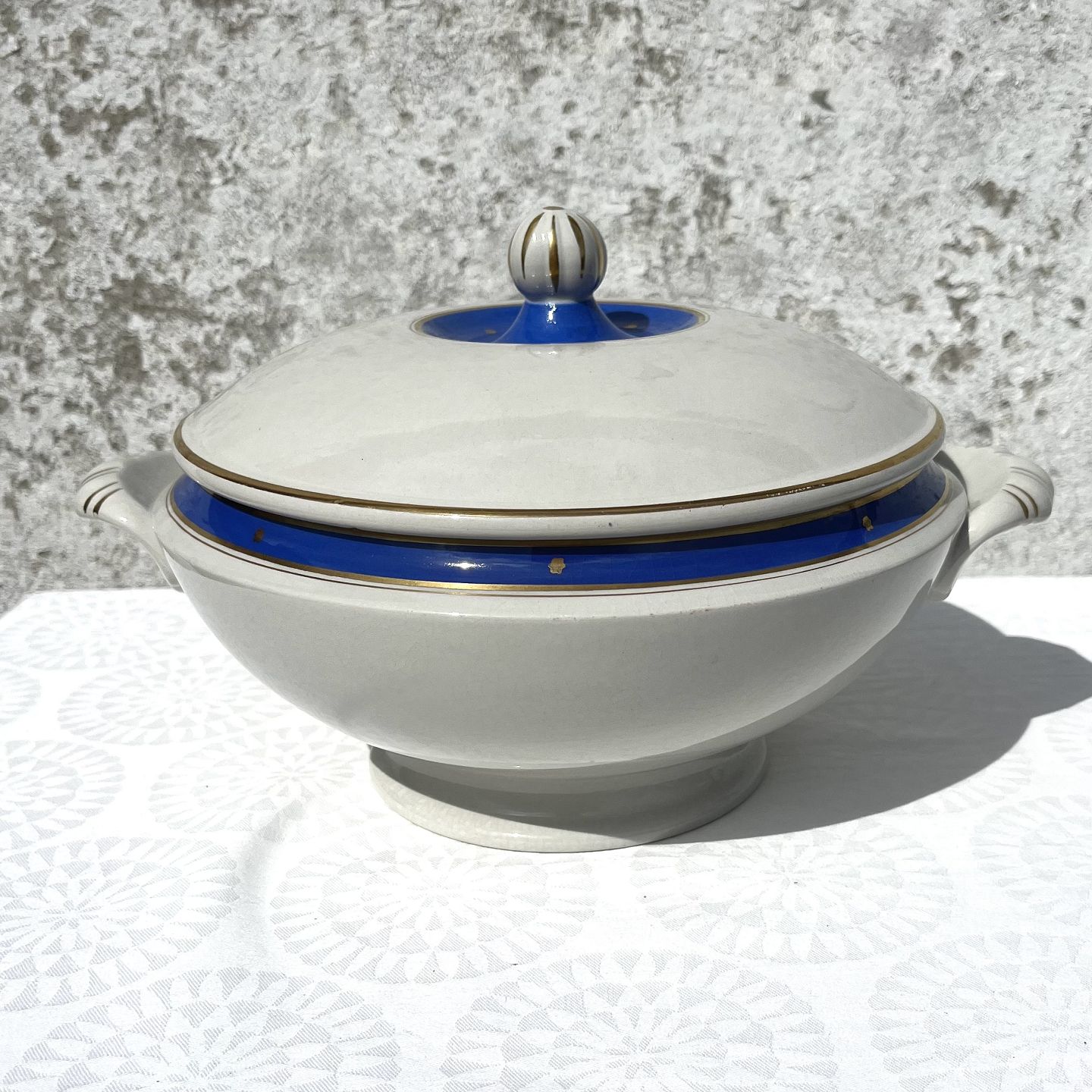 Royal Copenhagen, Aluminia, Sterlingstellet, Jagtstellet, Terrin, 17cm høj, 31cm i diameter *Lettere krakeleret*