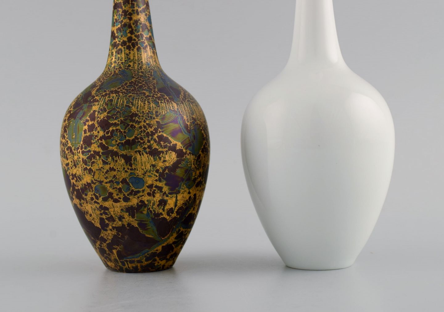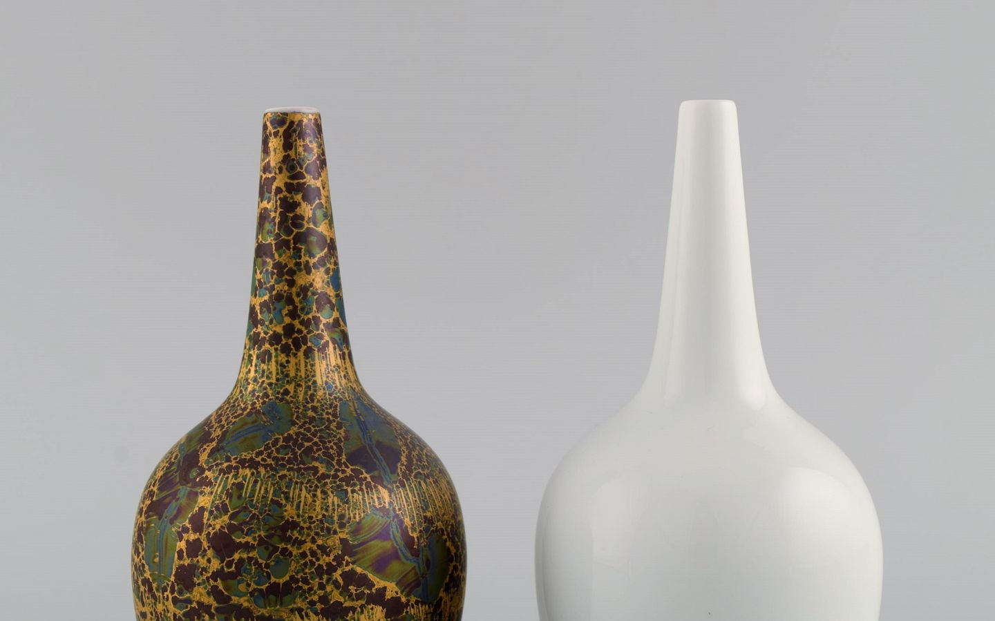 Two Rosenthal porcelain vases. Beautiful marbled gold decoration. 1980s.